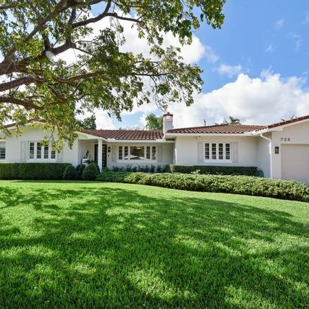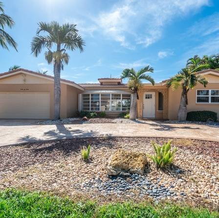 Set on Lake Sunset, this classic Mizner-style home has 100 ft. of prized lakefront and breathtaking open views, easy ocean access, a massive yard, lush mature landscaping, and a tantalizing pool.