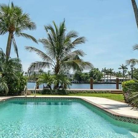 A stunning custom waterfront pool estate in the Sunrise Intracoastal neighborhood with floor-to-ceiling windows that showcase Middle River views.