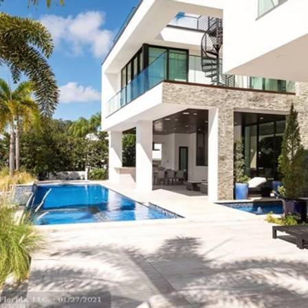Newer construction waterfront villa in Las Olas Isles. Boasts 100 ft. of deep waterfront, and 2,000 sq. ft. of outdoor lounging, with an incredible 40 ft. infinity pool, hot tub, & gorgeous water views.