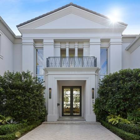 A beautiful Georgian-inspired waterfront estate in Las Olas Isles, landscaped with resort-style gardens, and vast outdoor entertaining space with a pool and 100 ft. of dockage.