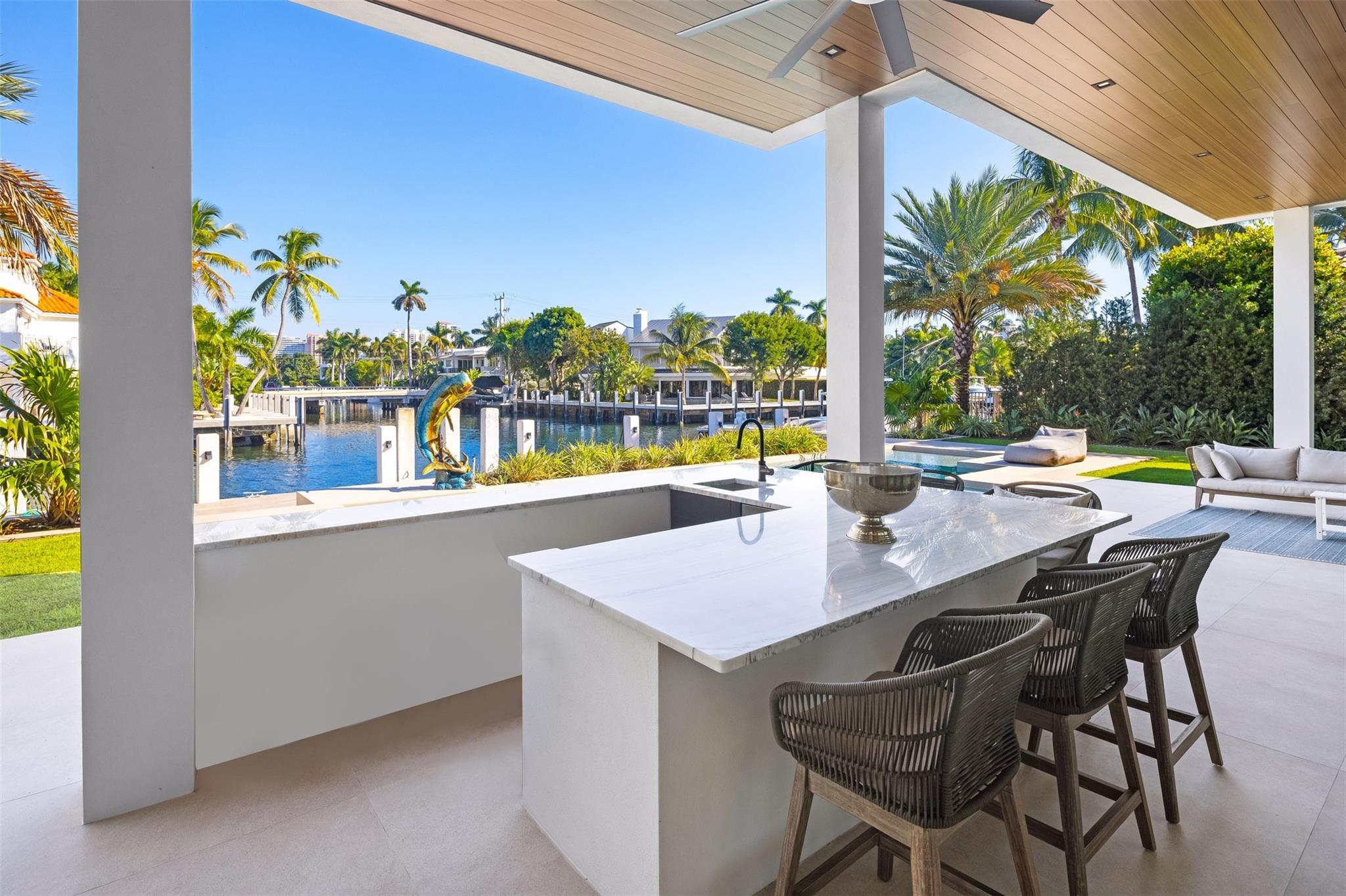 Premiere Las Olas living meets new-construction luxury on one of the most coveted streets in the Isles w underground utilities & one of the widest, deepest canals. This warm contemporary Estate showcases a rare, long view straight down the waterway & sits on 100' w a new seawall, concrete dock, 85K boat lift, & turning basin for easy ocean access. Find a double-height entry, 12' ceilings & top-of-the-line finishes throughout. An expansive first-floor primary suite anchors the home, joined by multiple guest suites, an office, club room w bar, wine room, floating staircase, commercial-grade elevator & expansive second floor balcony. Resort-style outdoor living features a heated saltwater pool, summer kitchen & sunken bar; all supported by full smart-home automation & a full house generator.