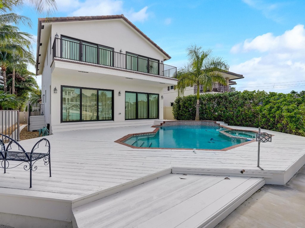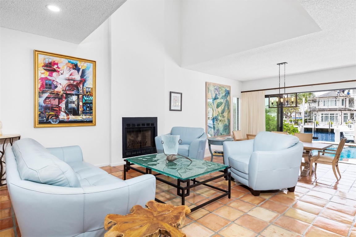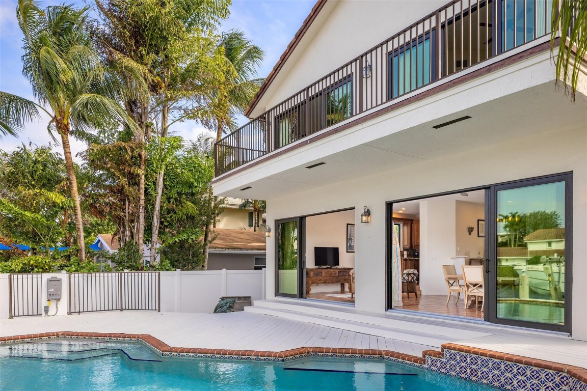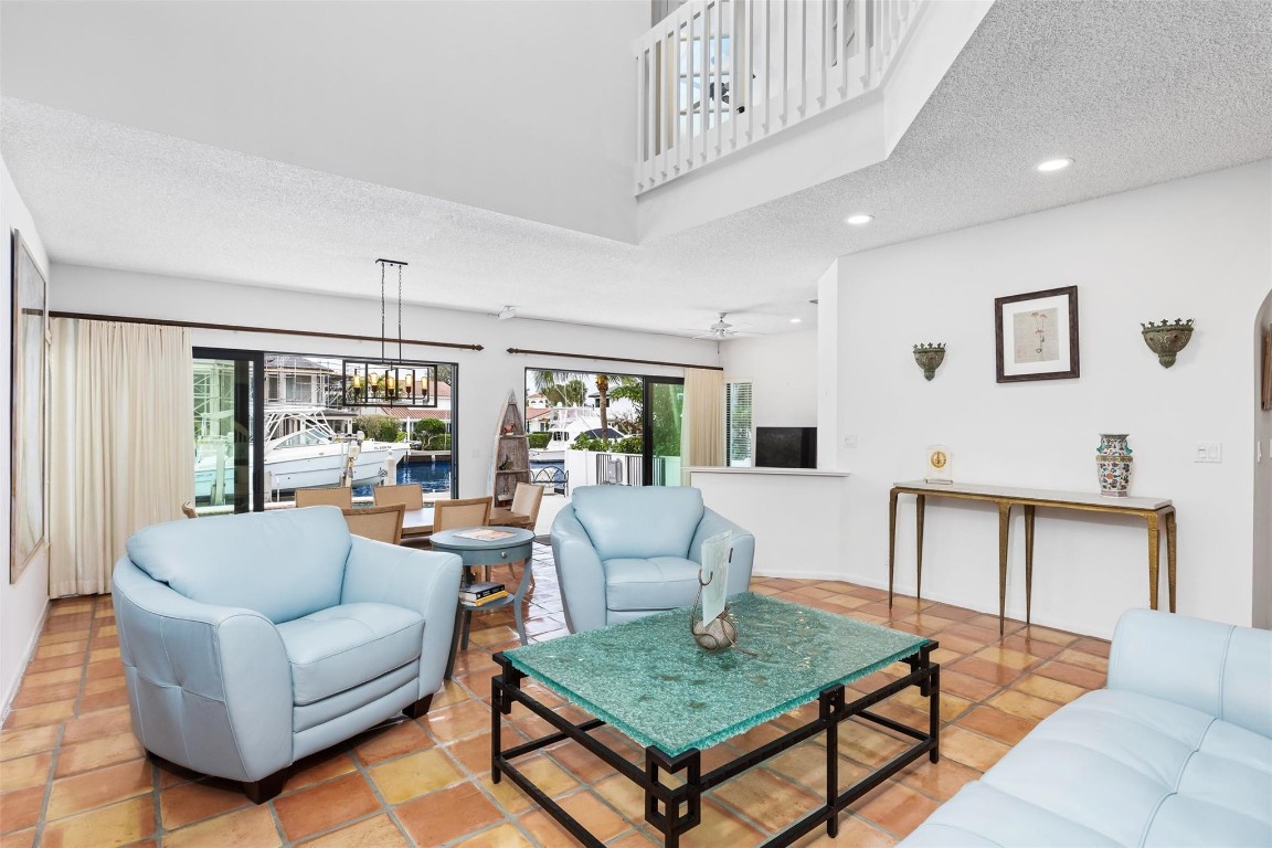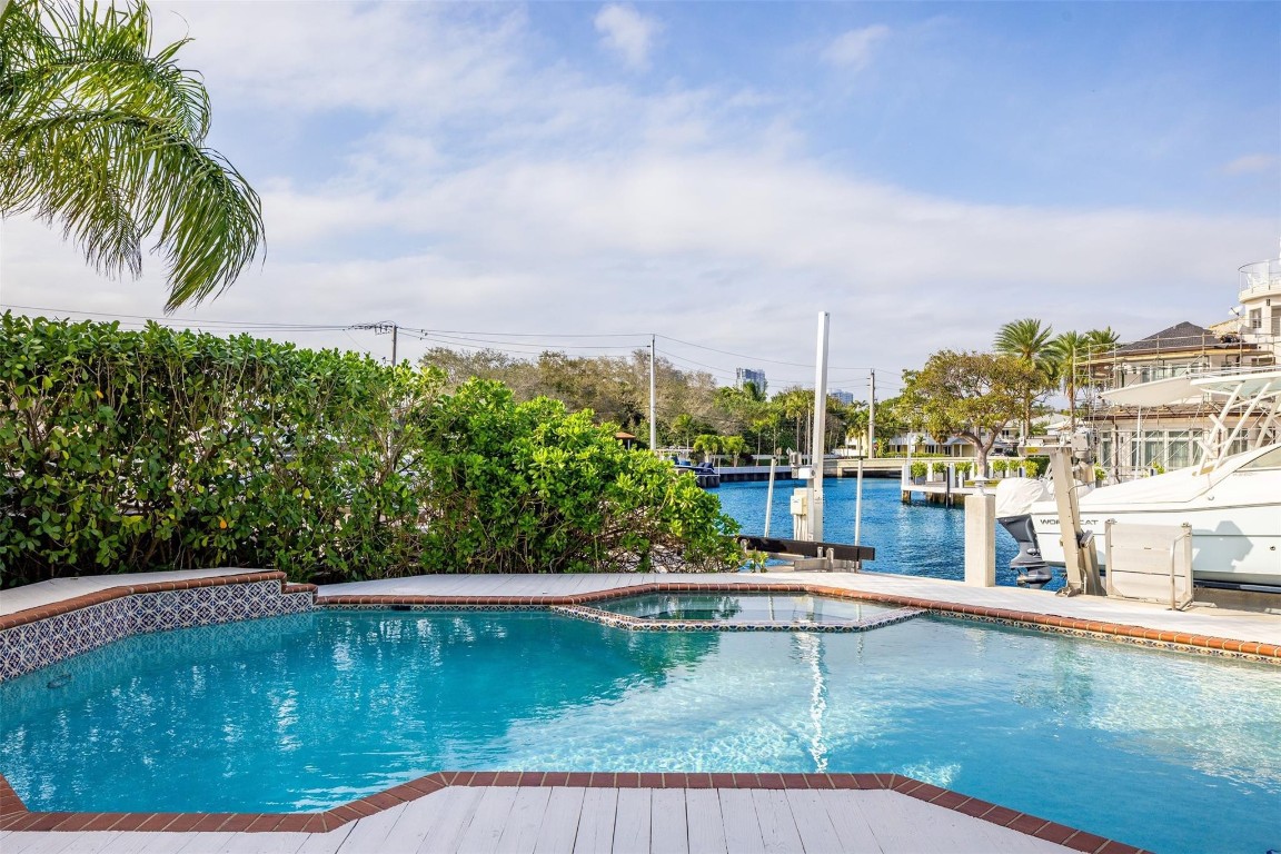 Discover your dream waterfront oasis in Rio Vista Isles! This 4BR/3BA gem offers expansive open living spaces with vaulted ceilings, a cozy fireplace in the living room, and walls of sliders providing breathtaking water views. The well-appointed kitchen features hardwood cabinetry, granite countertops, stainless appliances, and a breakfast bar, with a closet-sized pantry for ample storage. The ground floor bedroom doubles as a home office. Ascend the impressive staircase to your master retreat with a custom walk-in closet, a private sitting room, and a serene waterfront terrace. Two more bedrooms and a guest bath await. Enjoy outdoor living with an elevated pool, spa, a spacious deck & a 50FT new full-service concrete dock & seawall, boat lift, jet ski lift & floating dock for your kayaks!