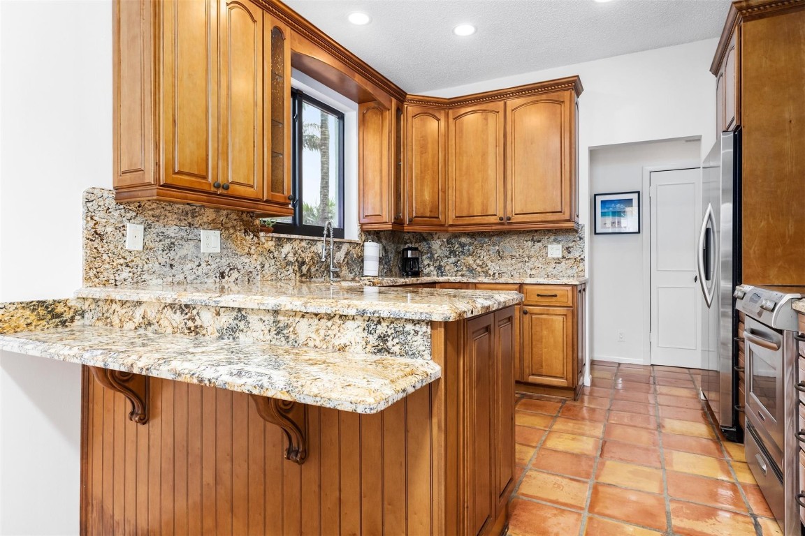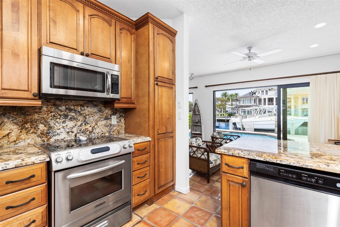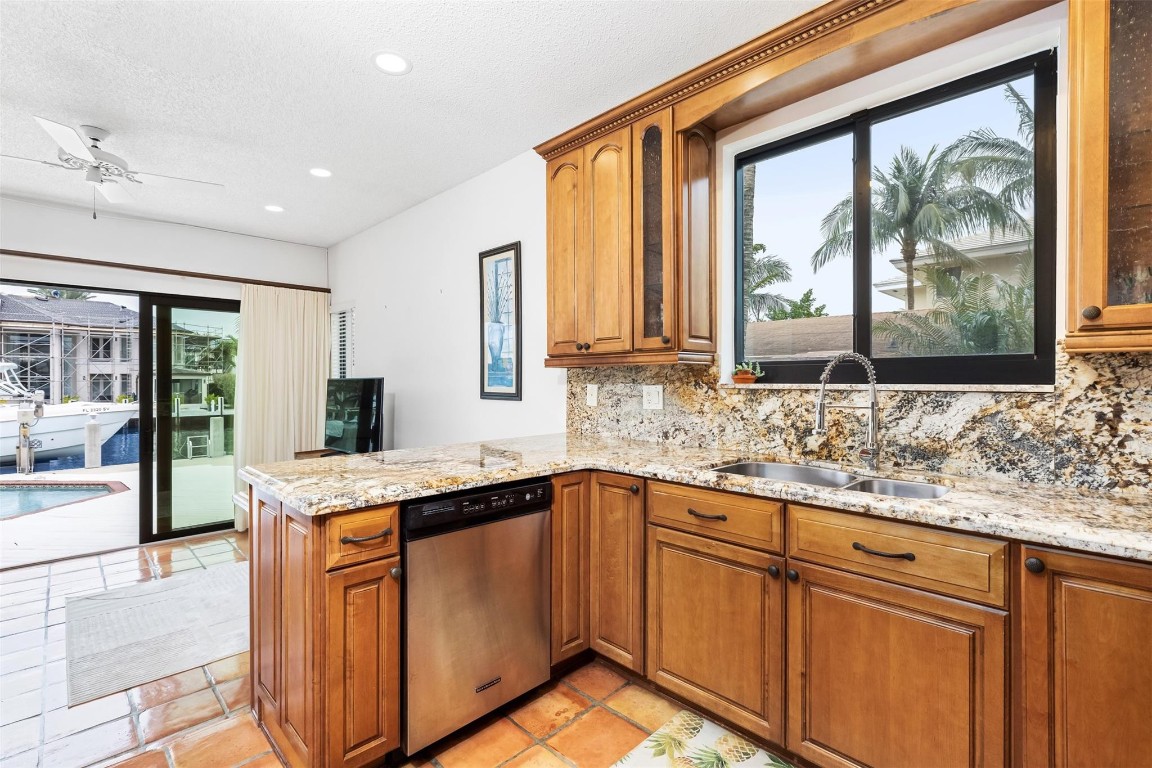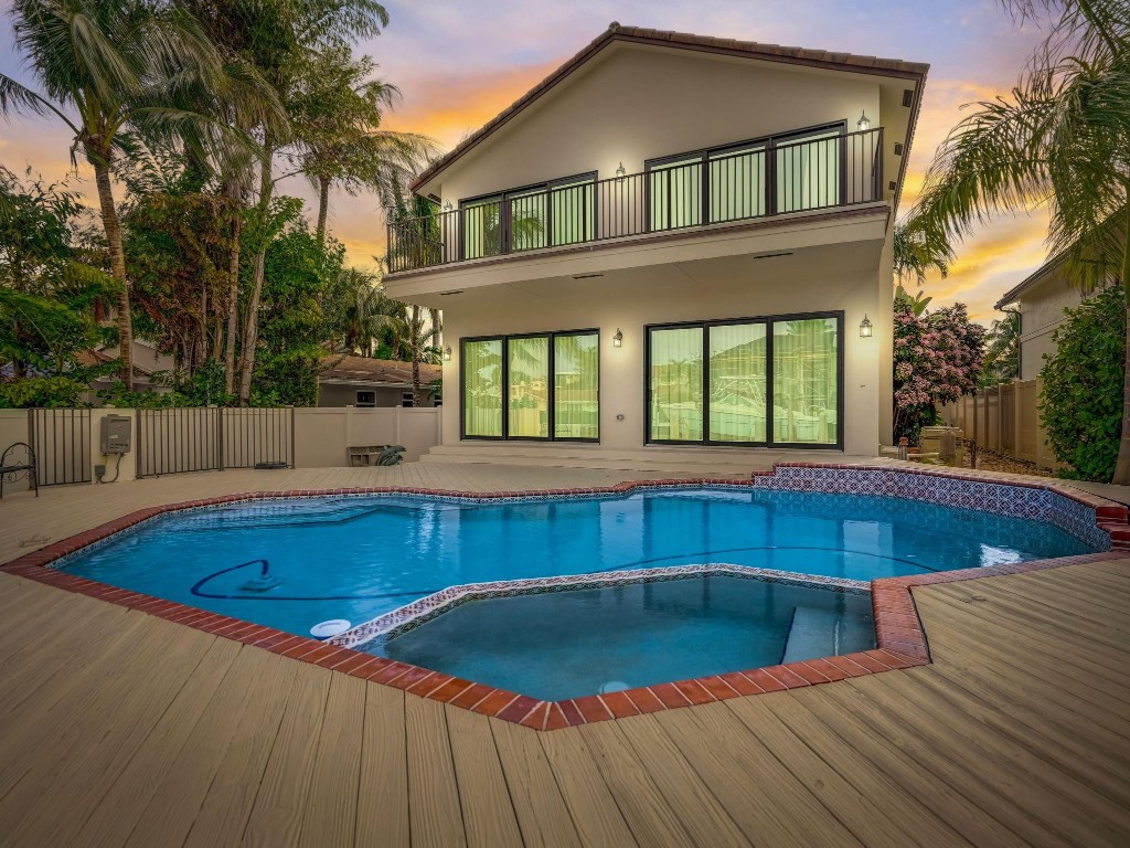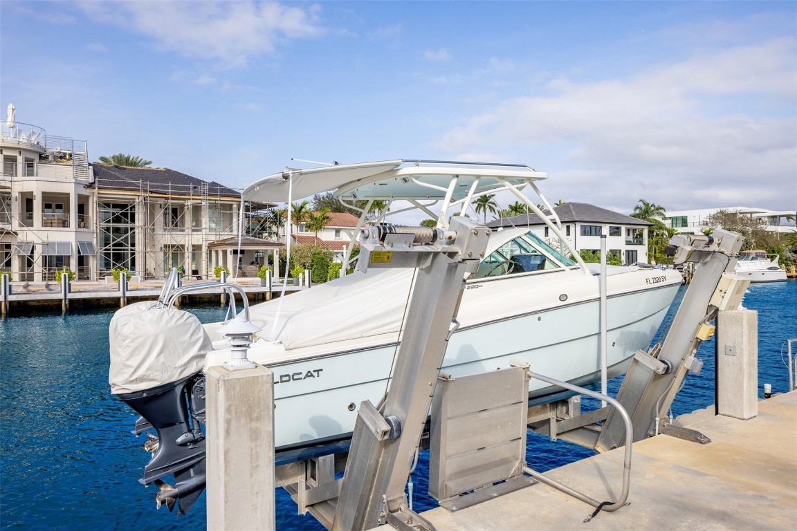 Discover your dream waterfront oasis in Rio Vista Isles! This 4BR/3BA gem offers expansive open living spaces with vaulted ceilings, a cozy fireplace in the living room, and walls of sliders providing breathtaking water views. The well-appointed kitchen features hardwood cabinetry, granite countertops, stainless appliances, and a breakfast bar, with a closet-sized pantry for ample storage. The ground floor bedroom doubles as a home office. Ascend the impressive staircase to your master retreat with a custom walk-in closet, a private sitting room, and a serene waterfront terrace. Two more bedrooms and a guest bath await. Enjoy outdoor living with an elevated pool, spa, a spacious deck & a 50FT new full-service concrete dock & seawall, boat lift, jet ski lift & floating dock for your kayaks!