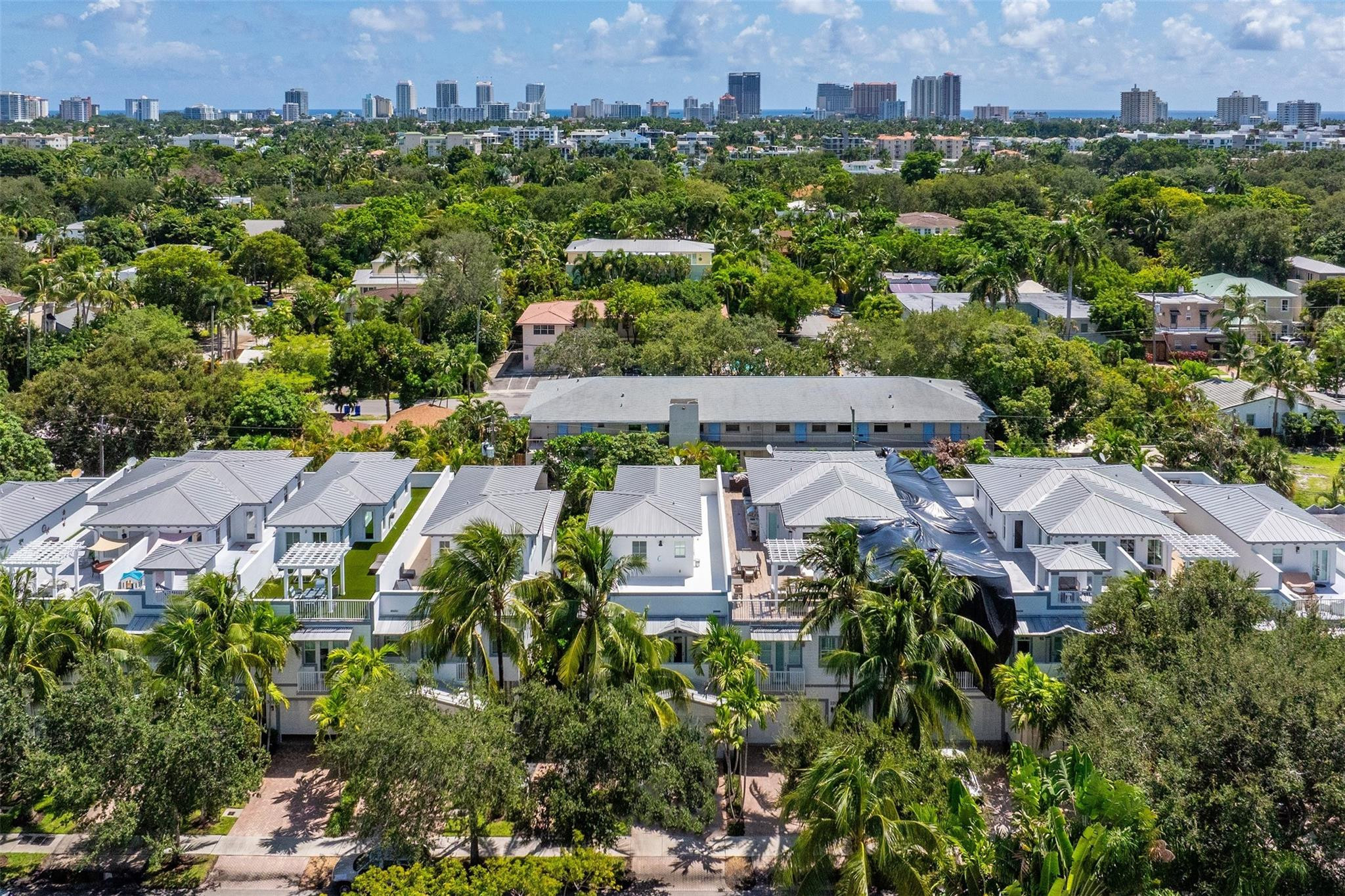 Welcome to this rare opportunity in the heart of Victoria Park! This stunning 4-bedroom, 4-bath townhome offers 3,262 square feet of luxurious living space, complete with a 2-car garage and thoughtful design throughout. The warmth of Pecky Cypress wood in the foyer and dining room sets a sophisticated tone. The open floor plan features high ceilings and ample natural light, seamlessly connecting each space. This home includes impact windows, a generator, and smart home technology for added convenience. The top floor boasts a theater room, perfect for entertainment and relaxation. The expansive rooftop terrace offers breathtaking views of downtown Fort Lauderdale and sunsets. Ideally located just minutes from restaurants, shops, and entertainment. Don't miss out on this luxurious townhome!