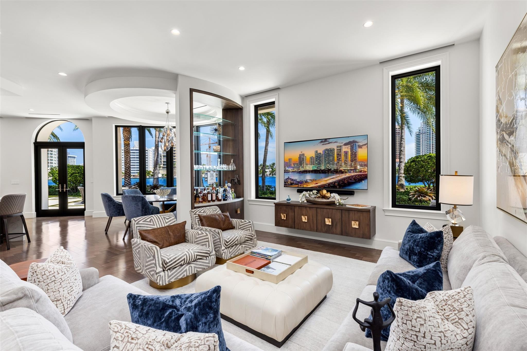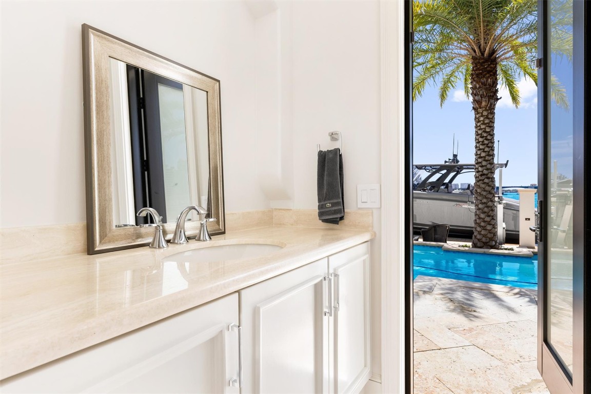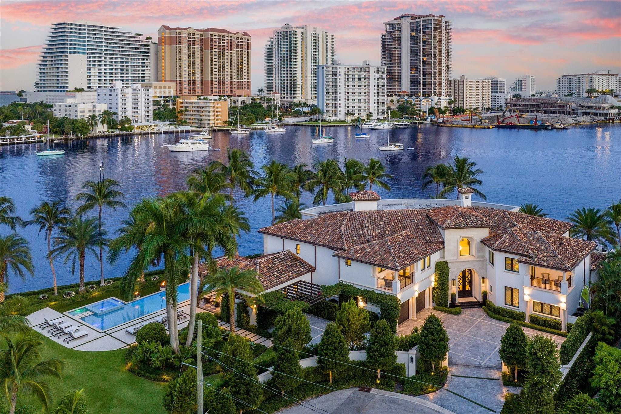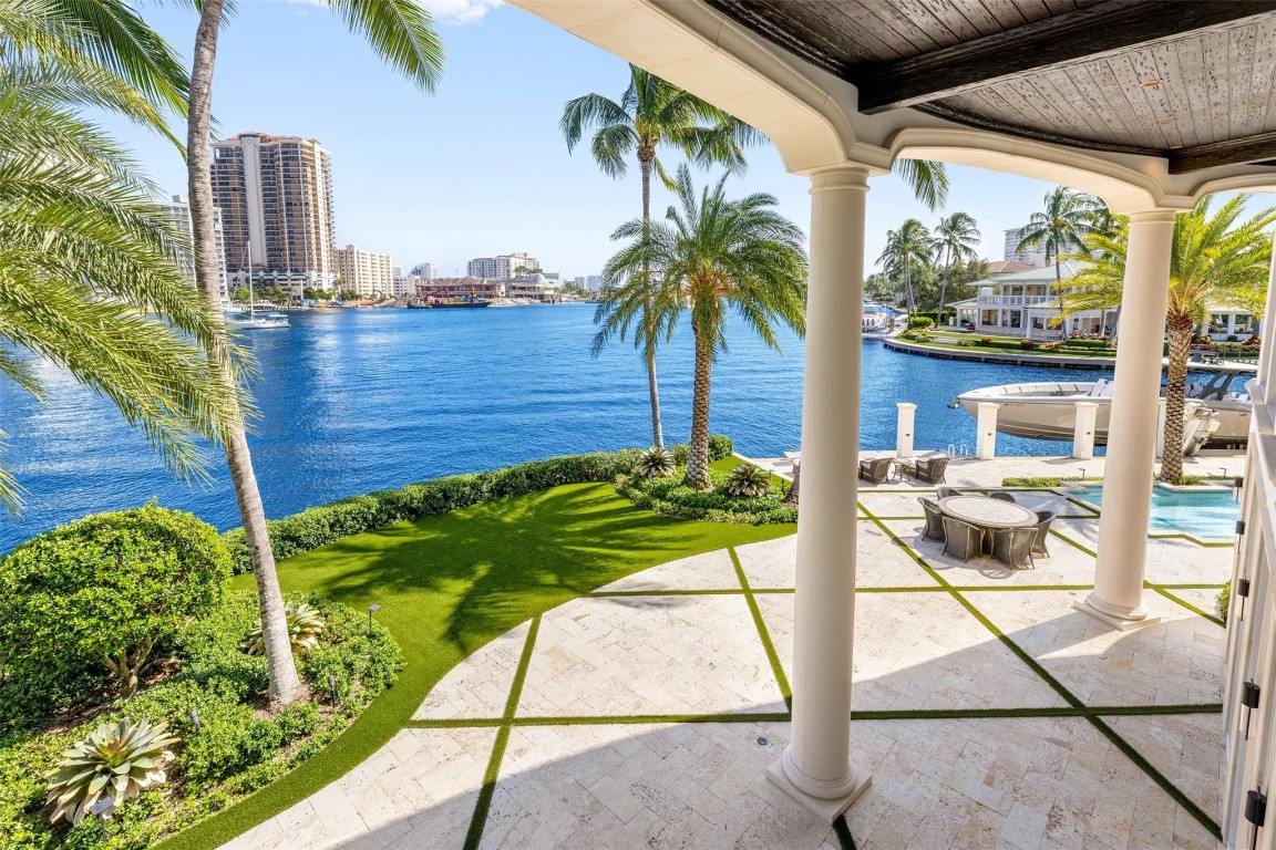 Step into a world of private island allure at this exceptional point lot crafted along the shores of the Intracoastal in the prestigious security patrolled Seven Isles neighborhood. This expertly manicured, gated, RARE double lot spanning over a half acre, boasts two pools, covered entertaining areas, ample room for expansion, & 325' of highly desirable SE exposure WF. Find timeless yet transitional elegance paired with the finest finishes throughout. Upstairs, find an oversized Primary Suite with panoramic views and a stunning private terrace. 2021 Renovations by Gulf Building include top-of-the-line construction materials, finishes, & security. Please refer to the last photos on the listing for Architect's proposed +/- 2500 AC SF addition and features.