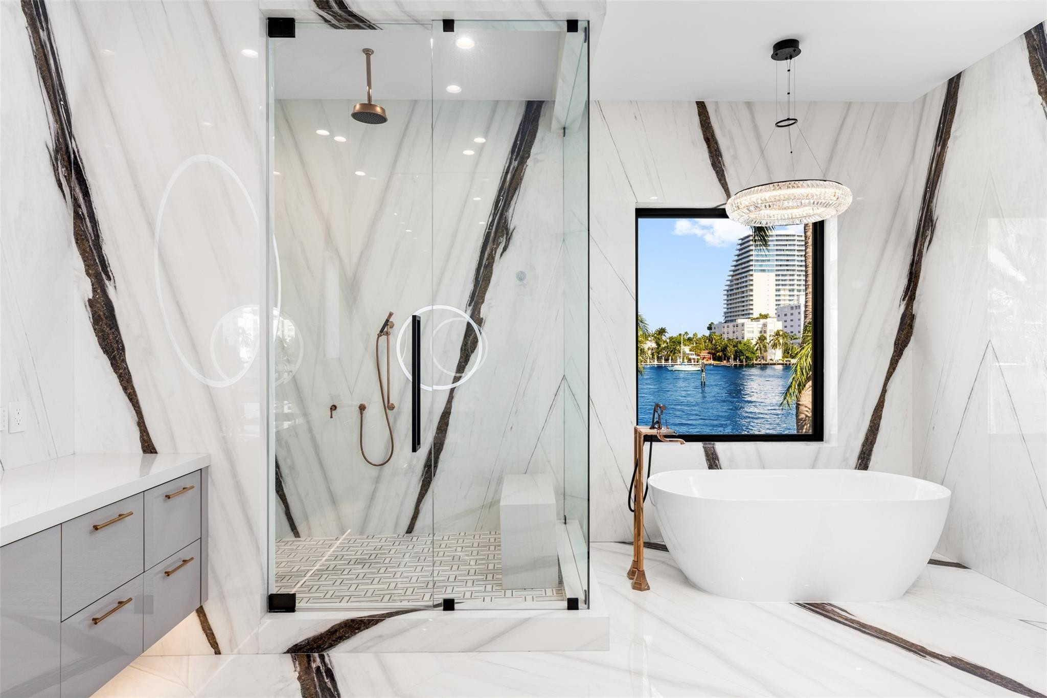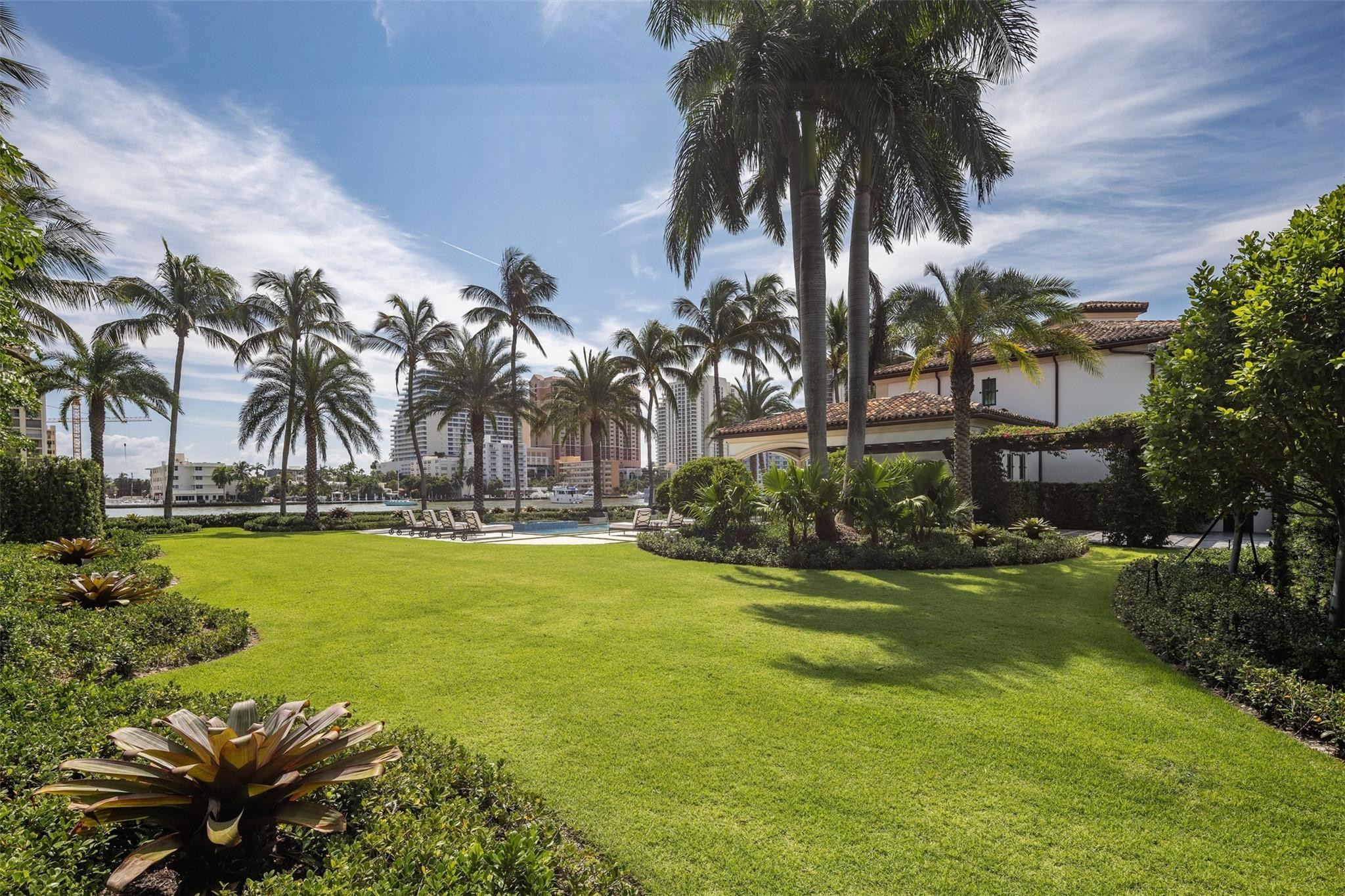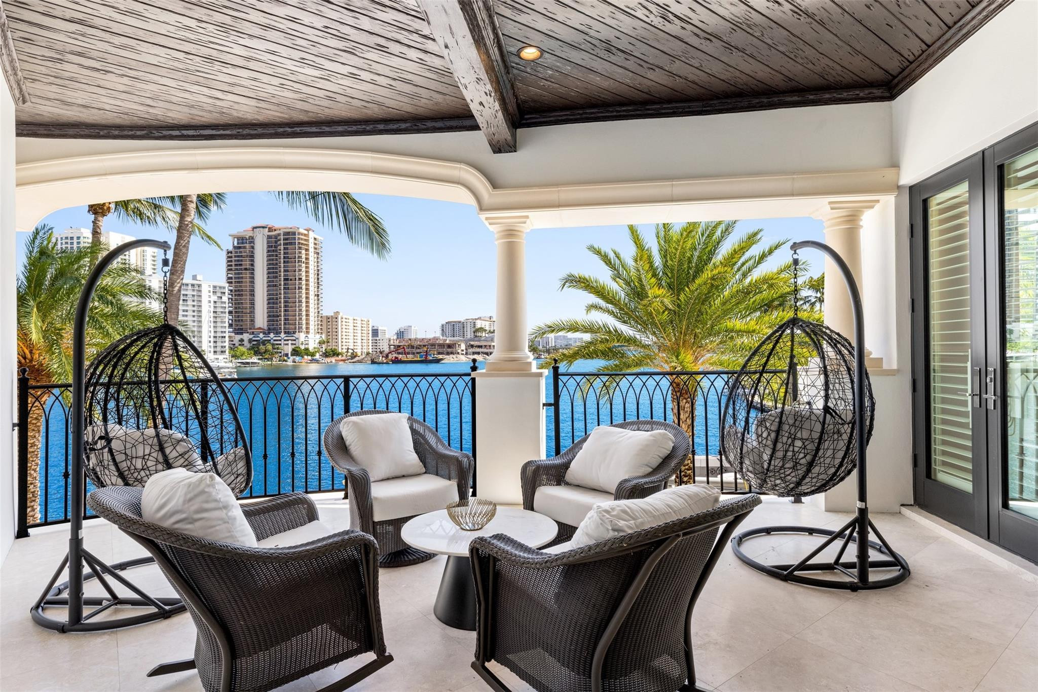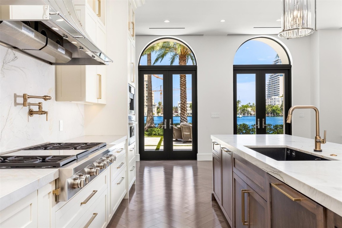 Step into a world of private island allure at this exceptional point lot crafted along the shores of the Intracoastal in the prestigious security patrolled Seven Isles neighborhood. This expertly manicured, gated, RARE double lot spanning over a half acre, boasts two pools, covered entertaining areas, ample room for expansion, & 325' of highly desirable SE exposure WF. Find timeless yet transitional elegance paired with the finest finishes throughout. Upstairs, find an oversized Primary Suite with panoramic views and a stunning private terrace. 2021 Renovations by Gulf Building include top-of-the-line construction materials, finishes, & security. Please refer to the last photos on the listing for Architect's proposed +/- 2500 AC SF addition and features.