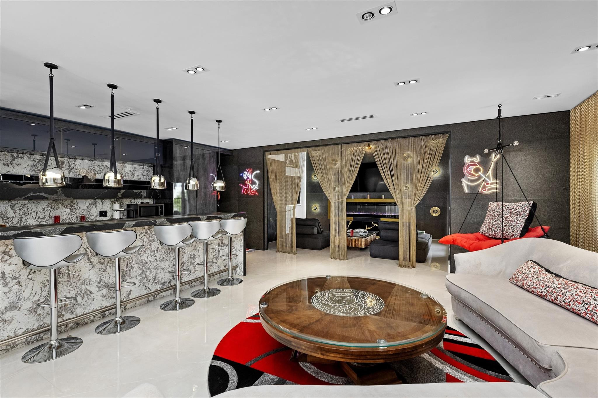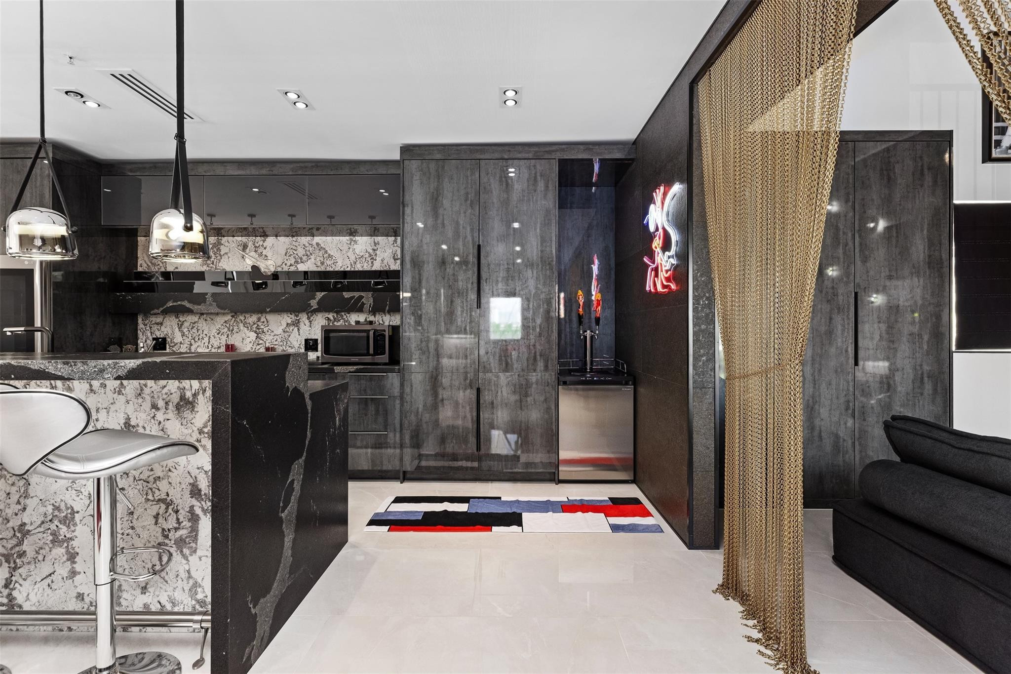 Indulge in luxurious coastal living at this elegantly-remodeled residence boasting unparalleled high-end finishes. With over $1M in custom upgrades, rare artwork & designer hand-crafted furnishings, this home is a masterpiece of modern design. The interior features high-gloss porcelain flooring seamlessly transitioning to matte-finish on the balconies, remodeled kitchen equipped with Miele appliances, imported cabinetry, bathrooms featuring Murano glass vanities & 24K gold-foiled tilework, brand new elevator, impact windows & doors & whole-home water filtration! Entertain effortlessly in the 4th floor bar/kitchen area & large deck with summer kitchen & stunning ocean views. Marbella is an exclusive gated community just steps from the ocean, restaurants, shopping & entertainment.