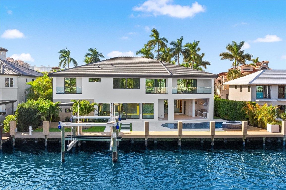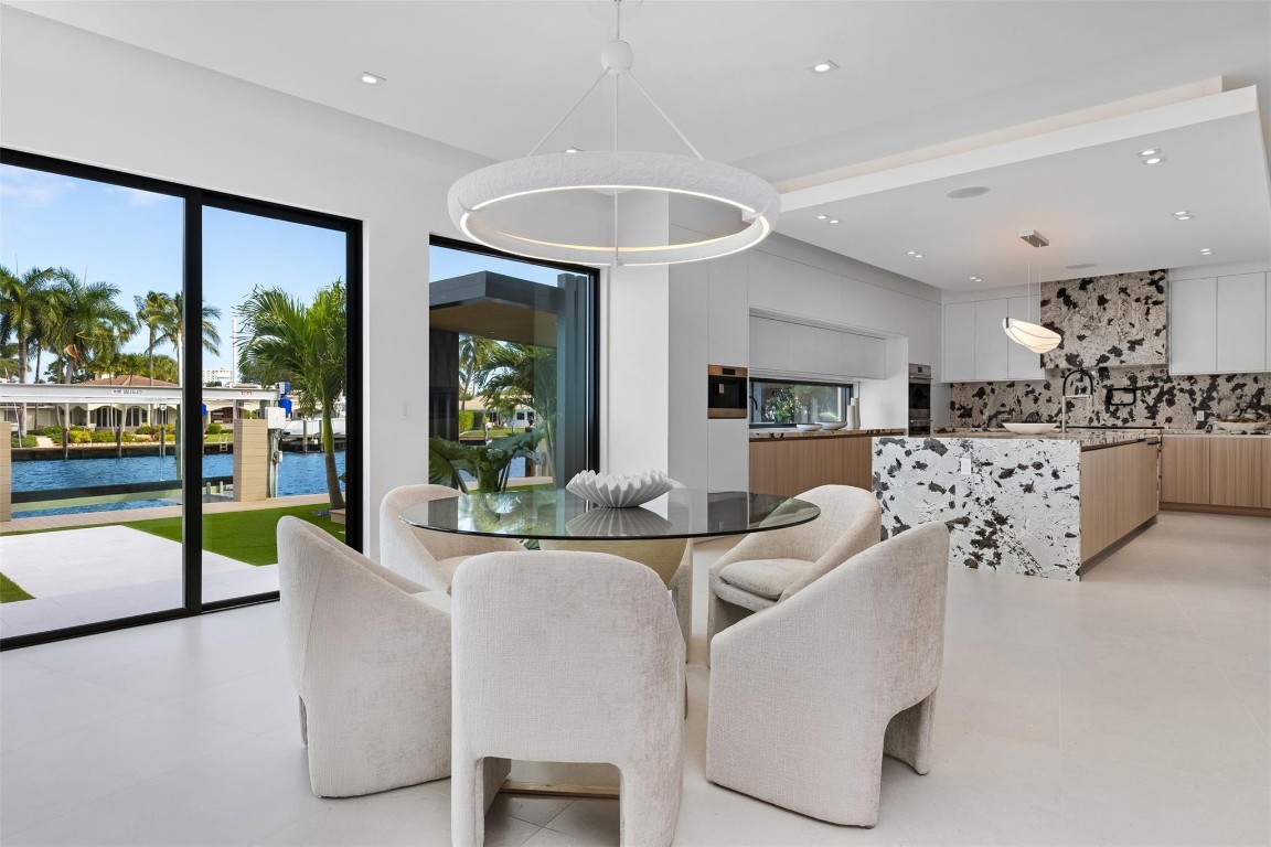 Newly gut-renovated 6-bed, 6.5-bath estate in Dolphin Isles with Intracoastal views! Just one lot off the point on a wide, deep canal, this home offers premier waterfront living with a 30,000lb boat lift, new dock & 3-car garage. The interior spans 7,600+ SF under air and features an office, loft, gym and all beds have balcony access. The expansive primary suite is a retreat with dual custom walk-in closets, dual water closets, spa-like soaking tub, and spacious layout. High-end finishes include Wolf appliances, Signature Series paneled refrigerator/freezer, custom cabinetry, Brizo & Kallista fixtures, Control4 automation, porcelain tile & engineered hardwood floors. Upgrades include new impact windows & doors, all new plumbing & a new metal roof. Walking distance to beach, shops & dining