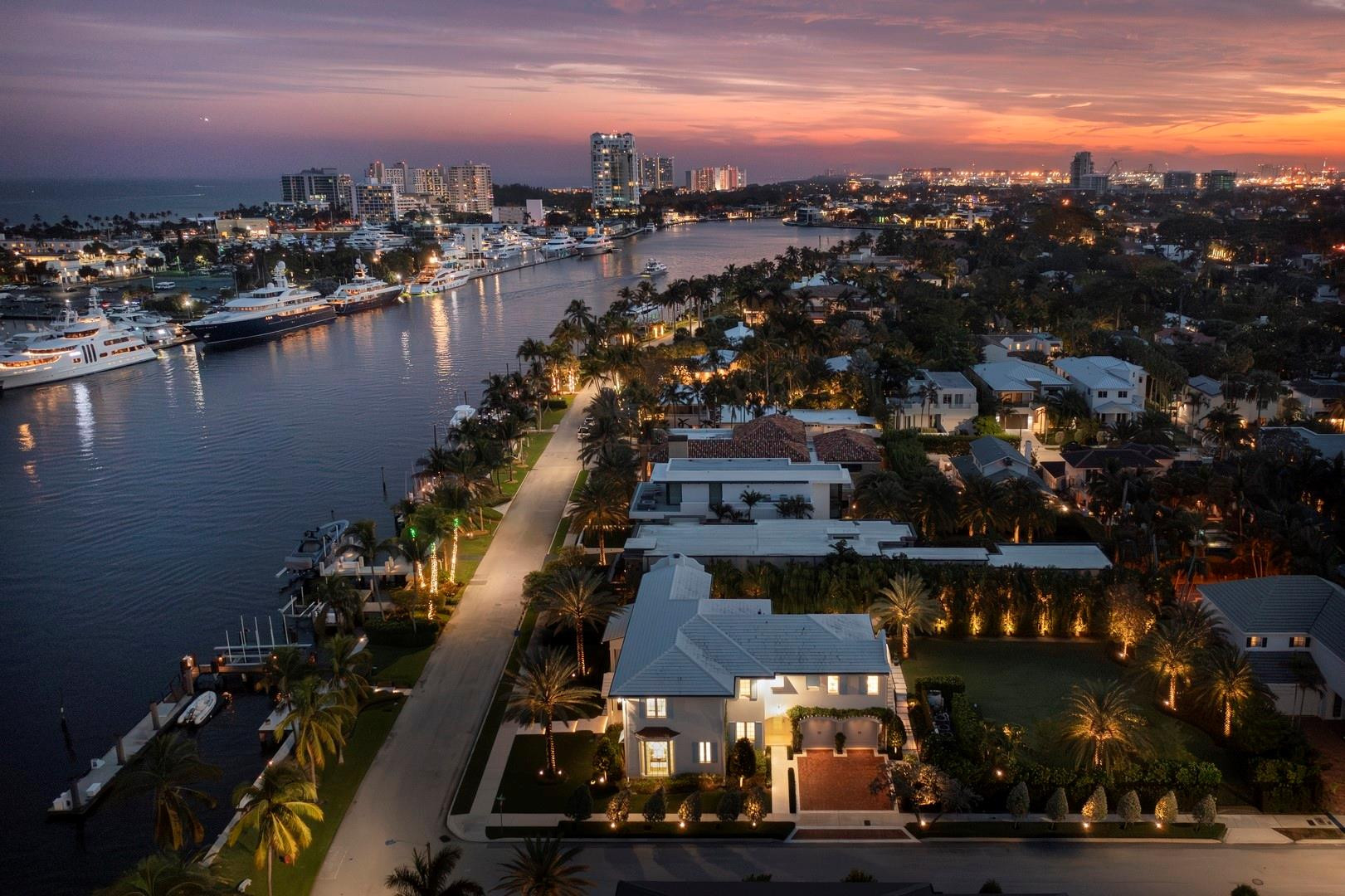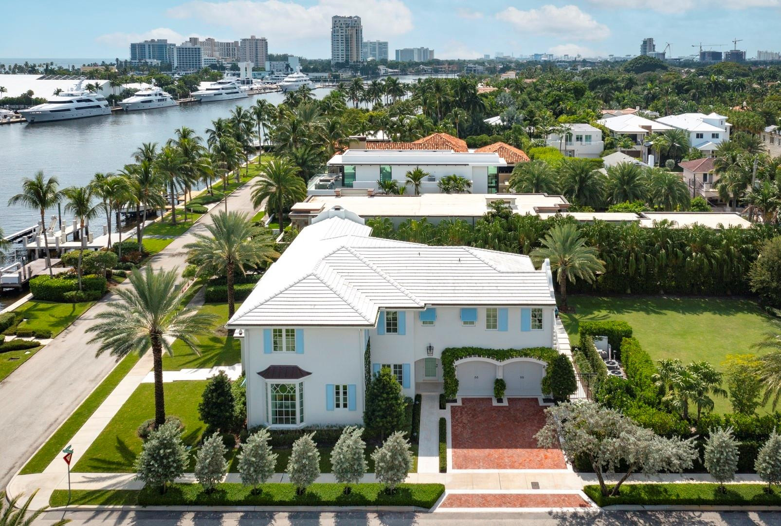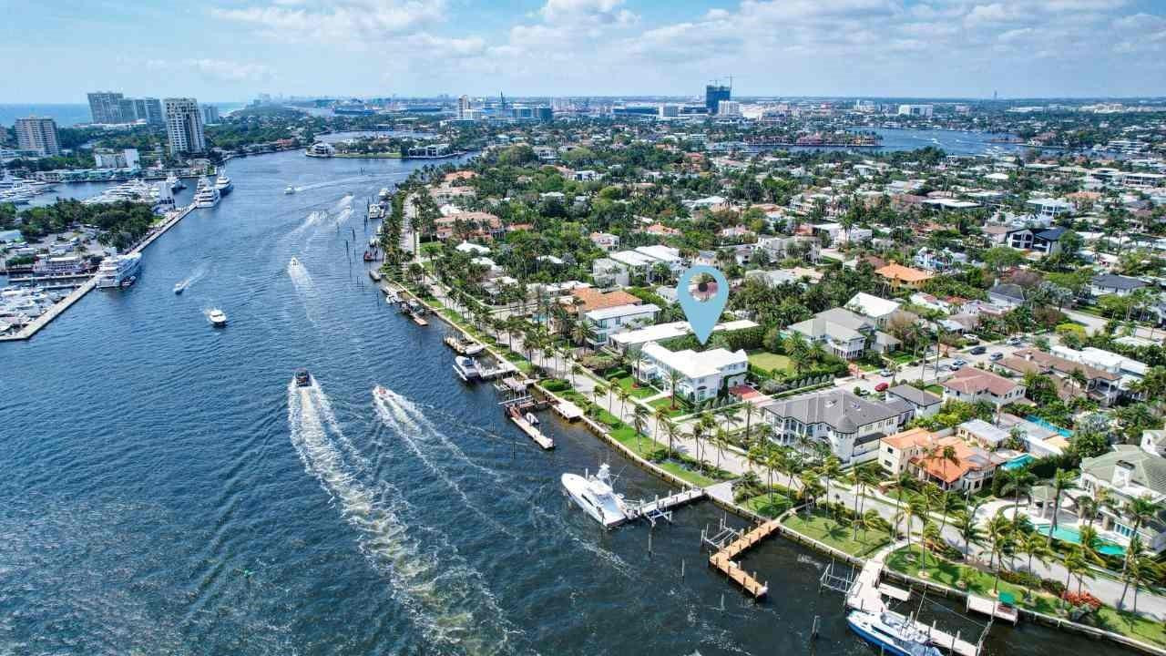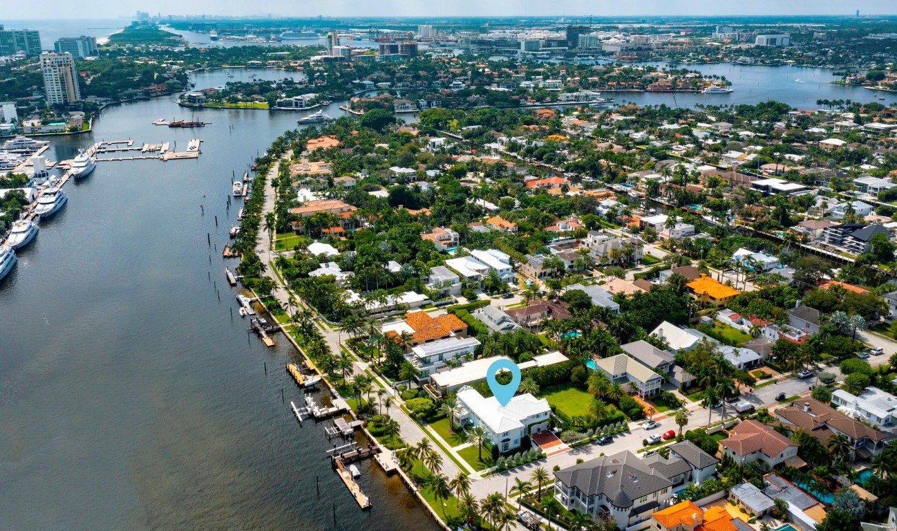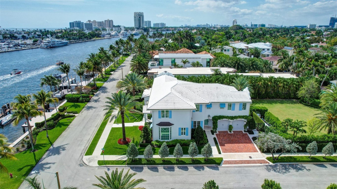 Newly built custom Intracoastal Estate offers a daily boat parade with wide open Intracoastal views from many rooms. Superbly located in highly desirable, security patrolled Idlewyld, close to beaches & Las Olas. Barely occupied, shows impeccably & as-new! Sophisticated island inspiration, high quality construction, millwork & natural finishes, hardwood floors & unique marbles. Lutron technology. Ultimate Chef's kitchen, professional grade appliances. 1st level: media, living & dining areas, 6th bed suite/home office option. Upstairs 4 bedrooms + ultra-luxury Primary Suite, dual closets/spa baths. The sale price included the vacant lot next door. There was also a furniture allocation and other factors that affected the recorded sales price. - Additional lot is INCLUDED.- All outdoor patios, walk ways and pool surround are Shell Reef brushed limestone. Handcrafted glass mosaic tiles in the pool and spa that has a wall fountain feature.- Saltwater pool with stepping stone and beach ledge water features. Pool side gas fire bowl feature, retractable electronic awning and separate spa. Dedicated cabana bathroom.- Kitchen countertops are Taj Mahal honed & leathered quartzite. Backsplashes Ann Saks. Professional grade appliances includes La Cornue gas range, Sub-zero fridge and freezer plus two dishwashers. Large center island perfect for casual dining.- Downstairs en-suite potential bedroom, office or media area.- Large two car garage has custom cabinetry and storage.- 2nd level Primary Suite is the perfect retreat. Private access to the large covered terrace which is perfect for capturing the intracoastal views in privacy. Enjoy the vaulted ceilings and island ambiance! There is also a private exterior staircase offering access to the pool.- Primary Suite includes two separate spa style bathrooms finished with statuario marble, custom cabinetry and tiles. Two large dressing rooms and morning bar.- Two of the secondary bedroom suites have access to a private stairway down to the pool and lawned additional lot.- The intracoastal waterway bedroom suite has an incredible spa style bath with soaking tub and separate shower.- The laundry and utility room is on the second level.- Air conditioners include: #1/5 ton, #2/3 ton, #3/2 ton, #4/3 ton and 2 mini splits in the family room plus 1 mini split in the garage.- Idlewyld Security has two elements, the Idlewyld Improvement Association maintains the gate and center island. There is also private security patrol overnight.- Low tide depth at the dock is approximately 7 ft and there are 5 ft boater's set backs & 30,000 lb boat left. Multi yacht dockage potential to put a larger yacht on the outside dock, tender on the lift and additional smaller boat or water toys on the inside of the floating dock. All privately gated._ New construction by top builder, Jim La Vallee Construction, Fort Lauderdale. The custom detailing and quality of this residence must be seen to be appreciated.