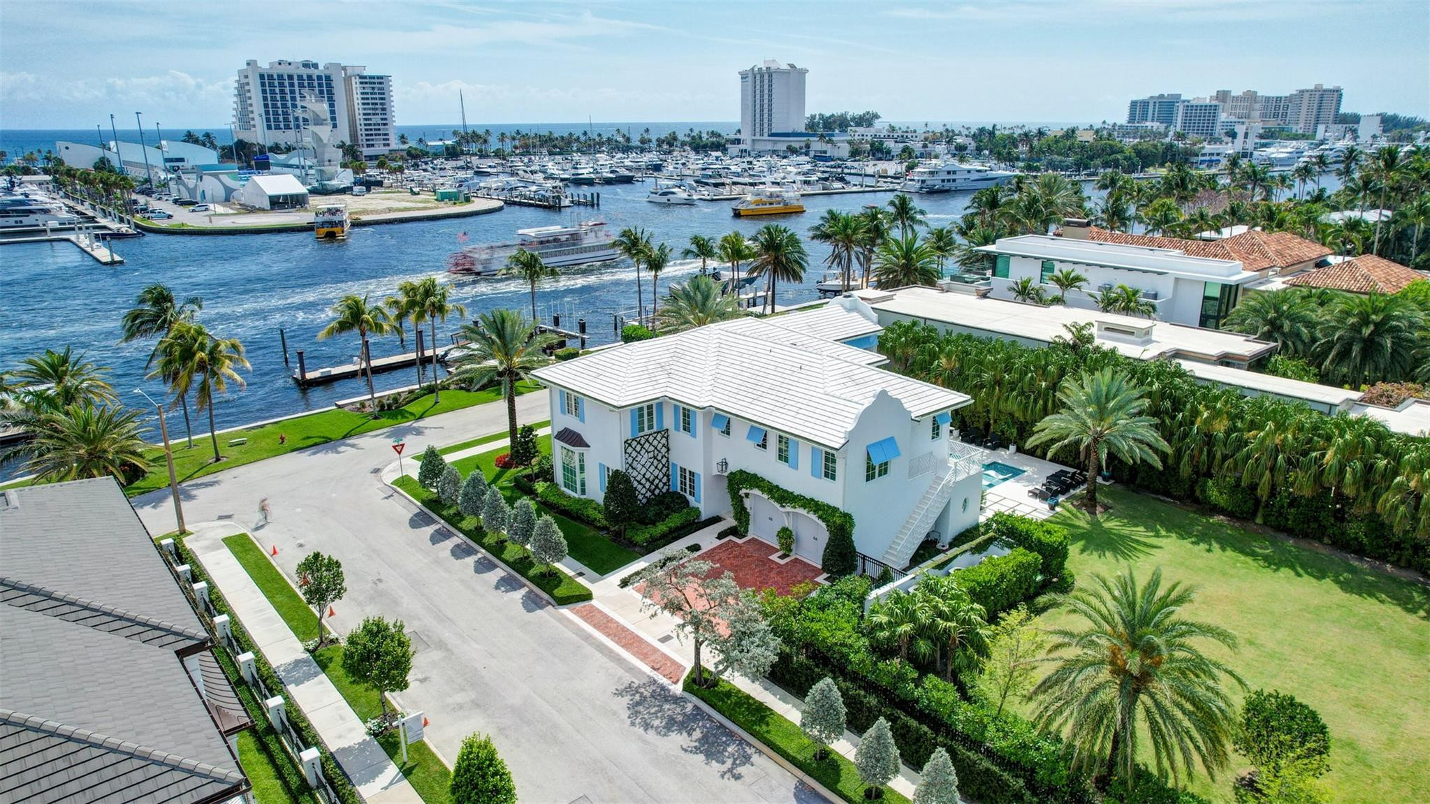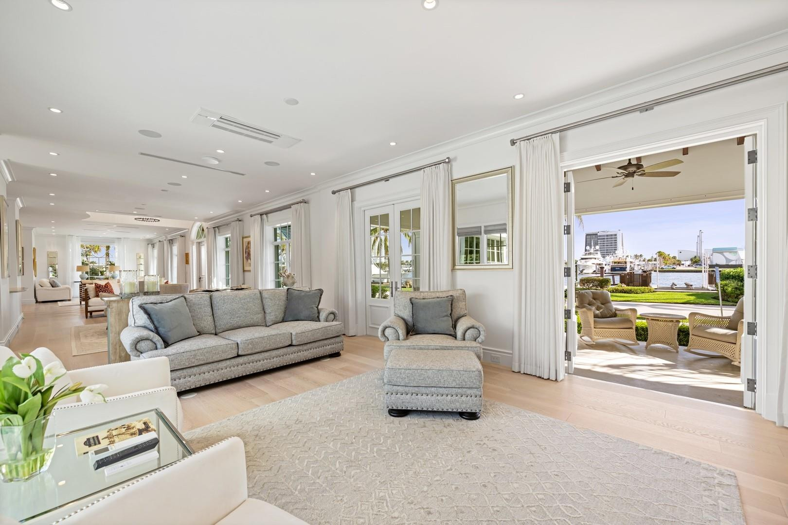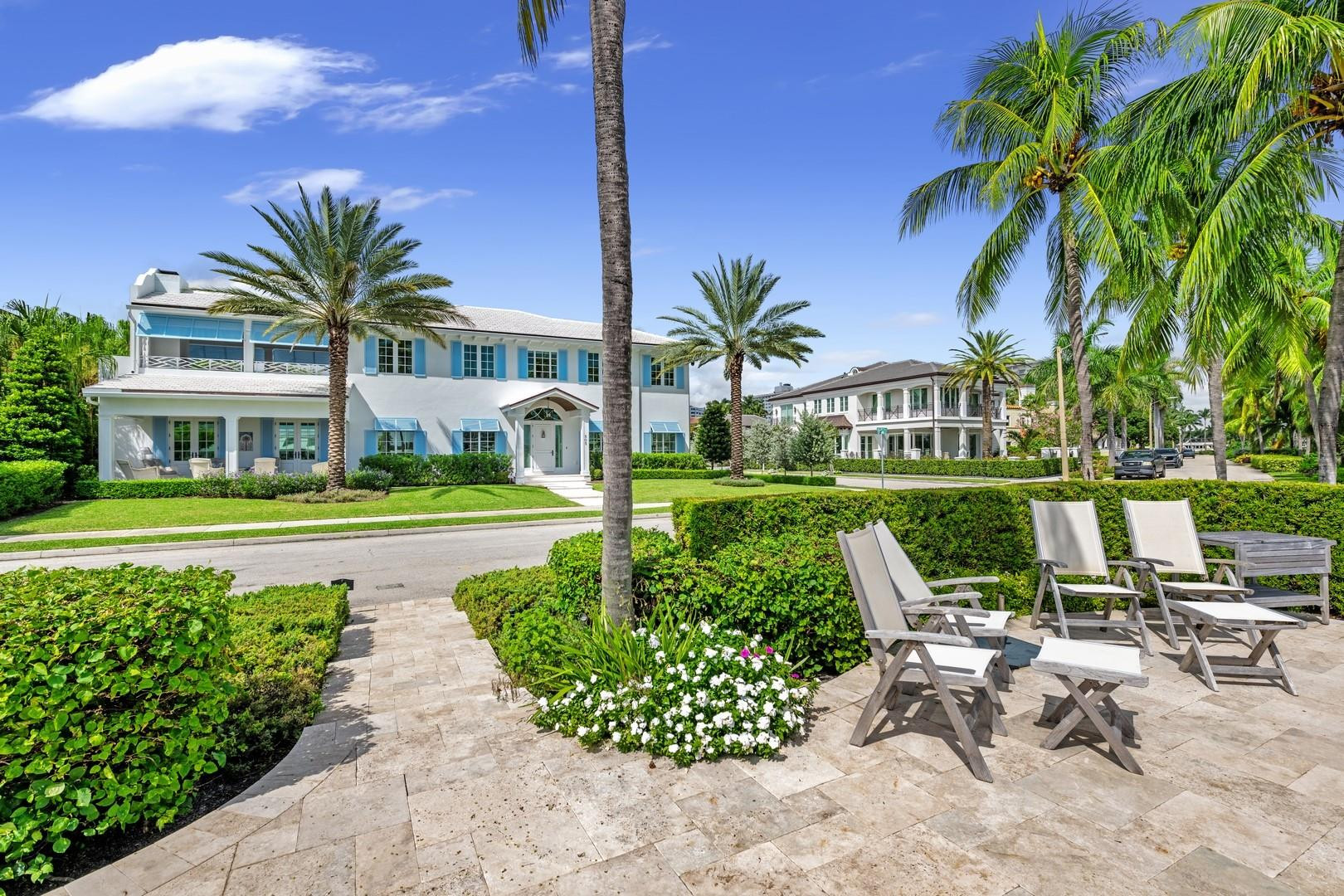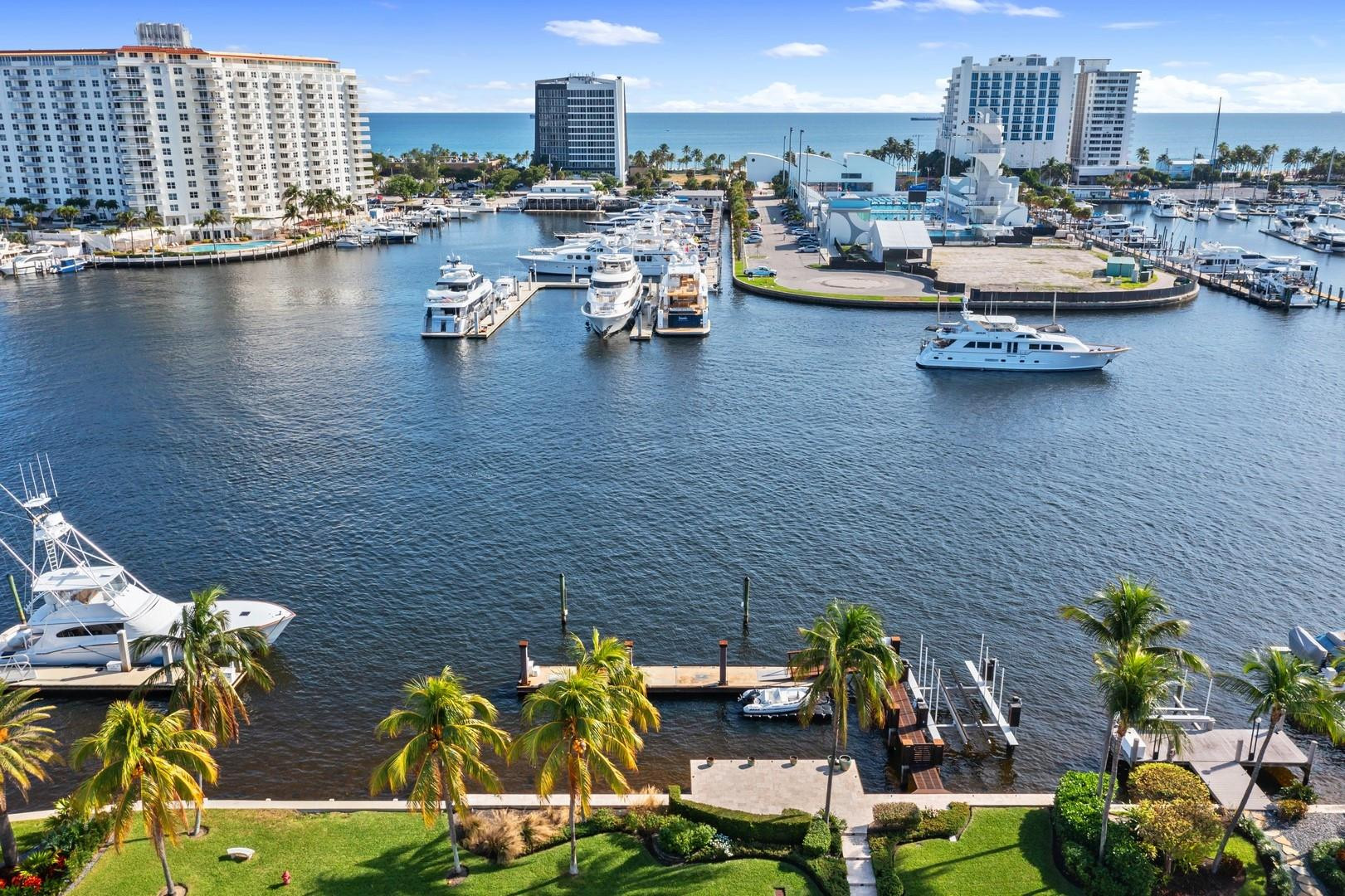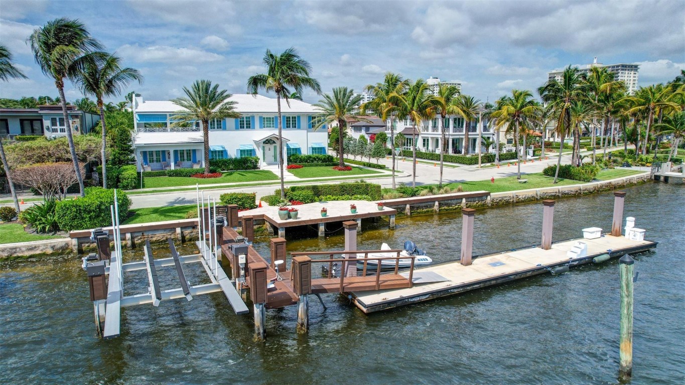 Newly built custom Intracoastal Estate offers a daily boat parade with wide open Intracoastal views from many rooms. Superbly located in highly desirable, security patrolled Idlewyld, close to beaches & Las Olas. Barely occupied, shows impeccably & as-new! Sophisticated island inspiration, high quality construction, millwork & natural finishes, hardwood floors & unique marbles. Lutron technology. Ultimate Chef's kitchen, professional grade appliances. 1st level: media, living & dining areas, 6th bed suite/home office option. Upstairs 4 bedrooms + ultra-luxury Primary Suite, dual closets/spa baths. The sale price included the vacant lot next door. There was also a furniture allocation and other factors that affected the recorded sales price. - Additional lot is INCLUDED.- All outdoor patios, walk ways and pool surround are Shell Reef brushed limestone. Handcrafted glass mosaic tiles in the pool and spa that has a wall fountain feature.- Saltwater pool with stepping stone and beach ledge water features. Pool side gas fire bowl feature, retractable electronic awning and separate spa. Dedicated cabana bathroom.- Kitchen countertops are Taj Mahal honed & leathered quartzite. Backsplashes Ann Saks. Professional grade appliances includes La Cornue gas range, Sub-zero fridge and freezer plus two dishwashers. Large center island perfect for casual dining.- Downstairs en-suite potential bedroom, office or media area.- Large two car garage has custom cabinetry and storage.- 2nd level Primary Suite is the perfect retreat. Private access to the large covered terrace which is perfect for capturing the intracoastal views in privacy. Enjoy the vaulted ceilings and island ambiance! There is also a private exterior staircase offering access to the pool.- Primary Suite includes two separate spa style bathrooms finished with statuario marble, custom cabinetry and tiles. Two large dressing rooms and morning bar.- Two of the secondary bedroom suites have access to a private stairway down to the pool and lawned additional lot.- The intracoastal waterway bedroom suite has an incredible spa style bath with soaking tub and separate shower.- The laundry and utility room is on the second level.- Air conditioners include: #1/5 ton, #2/3 ton, #3/2 ton, #4/3 ton and 2 mini splits in the family room plus 1 mini split in the garage.- Idlewyld Security has two elements, the Idlewyld Improvement Association maintains the gate and center island. There is also private security patrol overnight.- Low tide depth at the dock is approximately 7 ft and there are 5 ft boater's set backs & 30,000 lb boat left. Multi yacht dockage potential to put a larger yacht on the outside dock, tender on the lift and additional smaller boat or water toys on the inside of the floating dock. All privately gated._ New construction by top builder, Jim La Vallee Construction, Fort Lauderdale. The custom detailing and quality of this residence must be seen to be appreciated.