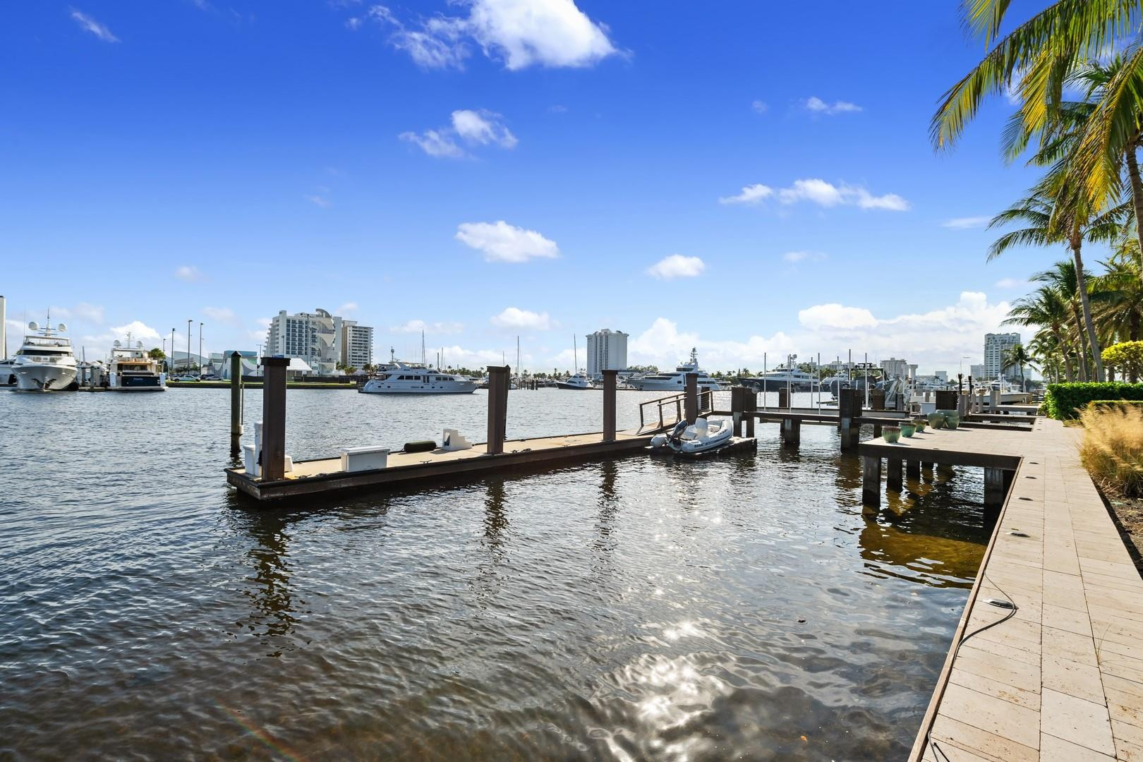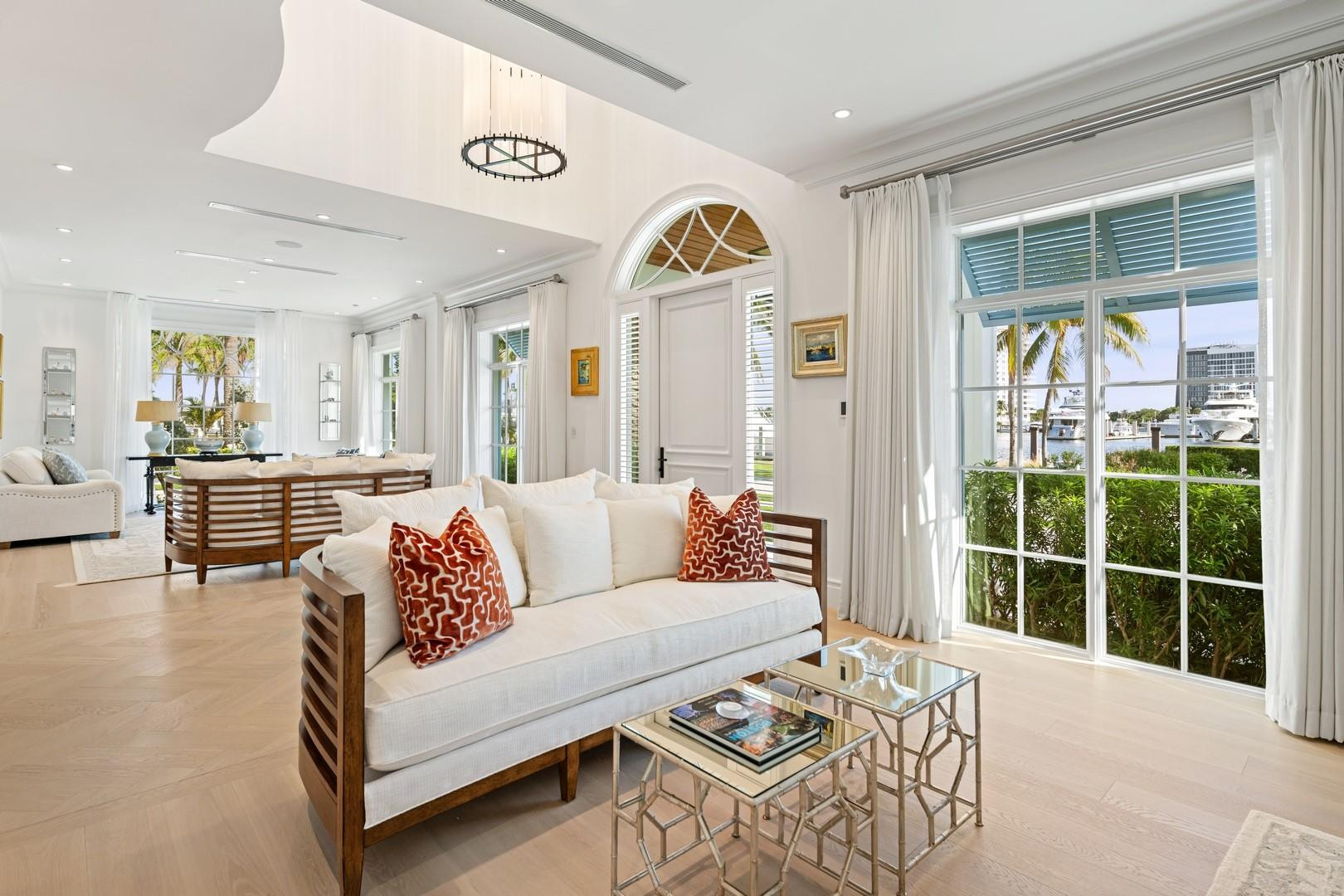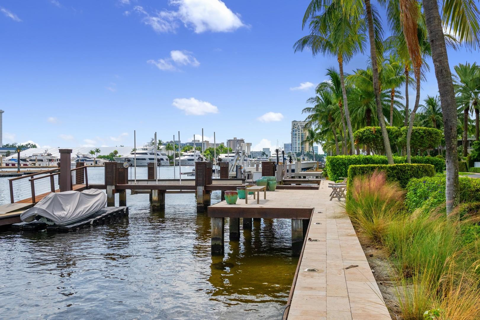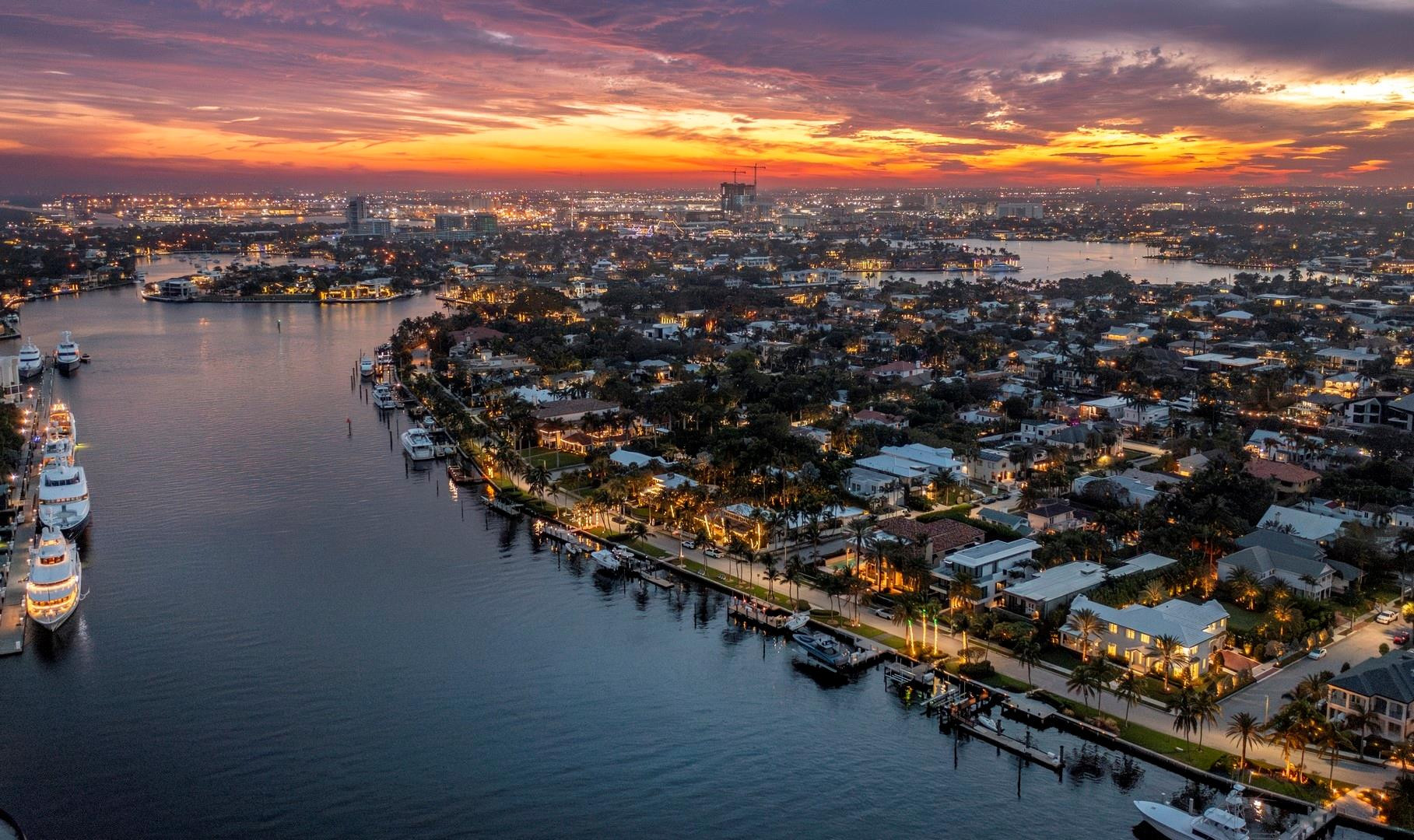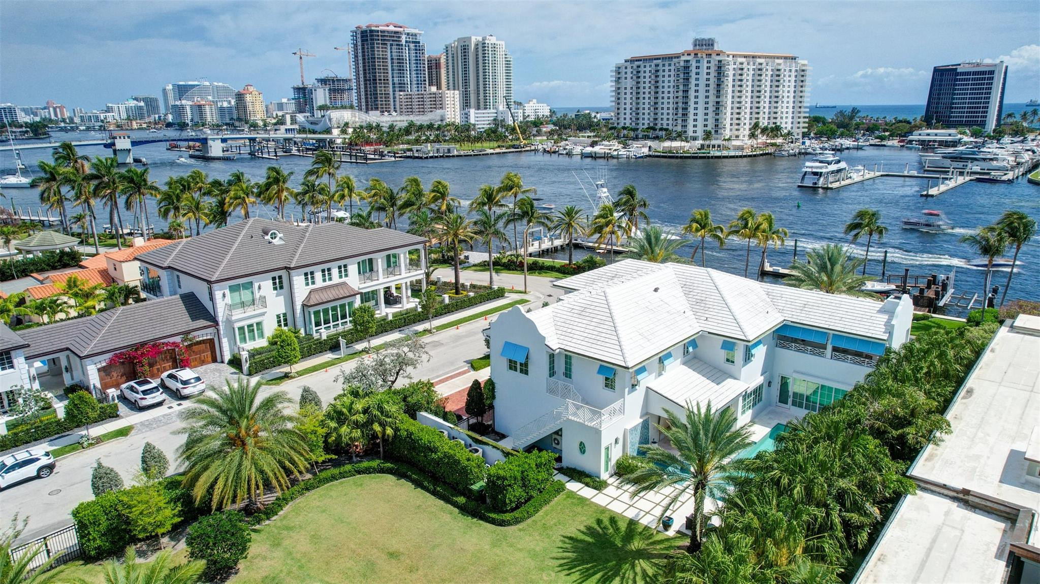 Newly built custom Intracoastal Estate offers a daily boat parade with wide open Intracoastal views from many rooms. Superbly located in highly desirable, security patrolled Idlewyld, close to beaches & Las Olas. Barely occupied, shows impeccably & as-new! Sophisticated island inspiration, high quality construction, millwork & natural finishes, hardwood floors & unique marbles. Lutron technology. Ultimate Chef's kitchen, professional grade appliances. 1st level: media, living & dining areas, 6th bed suite/home office option. Upstairs 4 bedrooms + ultra-luxury Primary Suite, dual closets/spa baths. The sale price included the vacant lot next door. There was also a furniture allocation and other factors that affected the recorded sales price. - Additional lot is INCLUDED.- All outdoor patios, walk ways and pool surround are Shell Reef brushed limestone. Handcrafted glass mosaic tiles in the pool and spa that has a wall fountain feature.- Saltwater pool with stepping stone and beach ledge water features. Pool side gas fire bowl feature, retractable electronic awning and separate spa. Dedicated cabana bathroom.- Kitchen countertops are Taj Mahal honed & leathered quartzite. Backsplashes Ann Saks. Professional grade appliances includes La Cornue gas range, Sub-zero fridge and freezer plus two dishwashers. Large center island perfect for casual dining.- Downstairs en-suite potential bedroom, office or media area.- Large two car garage has custom cabinetry and storage.- 2nd level Primary Suite is the perfect retreat. Private access to the large covered terrace which is perfect for capturing the intracoastal views in privacy. Enjoy the vaulted ceilings and island ambiance! There is also a private exterior staircase offering access to the pool.- Primary Suite includes two separate spa style bathrooms finished with statuario marble, custom cabinetry and tiles. Two large dressing rooms and morning bar.- Two of the secondary bedroom suites have access to a private stairway down to the pool and lawned additional lot.- The intracoastal waterway bedroom suite has an incredible spa style bath with soaking tub and separate shower.- The laundry and utility room is on the second level.- Air conditioners include: #1/5 ton, #2/3 ton, #3/2 ton, #4/3 ton and 2 mini splits in the family room plus 1 mini split in the garage.- Idlewyld Security has two elements, the Idlewyld Improvement Association maintains the gate and center island. There is also private security patrol overnight.- Low tide depth at the dock is approximately 7 ft and there are 5 ft boater's set backs & 30,000 lb boat left. Multi yacht dockage potential to put a larger yacht on the outside dock, tender on the lift and additional smaller boat or water toys on the inside of the floating dock. All privately gated._ New construction by top builder, Jim La Vallee Construction, Fort Lauderdale. The custom detailing and quality of this residence must be seen to be appreciated.