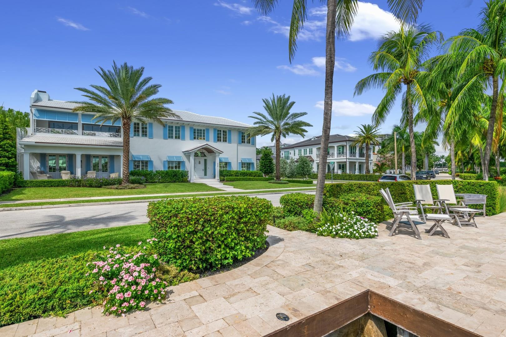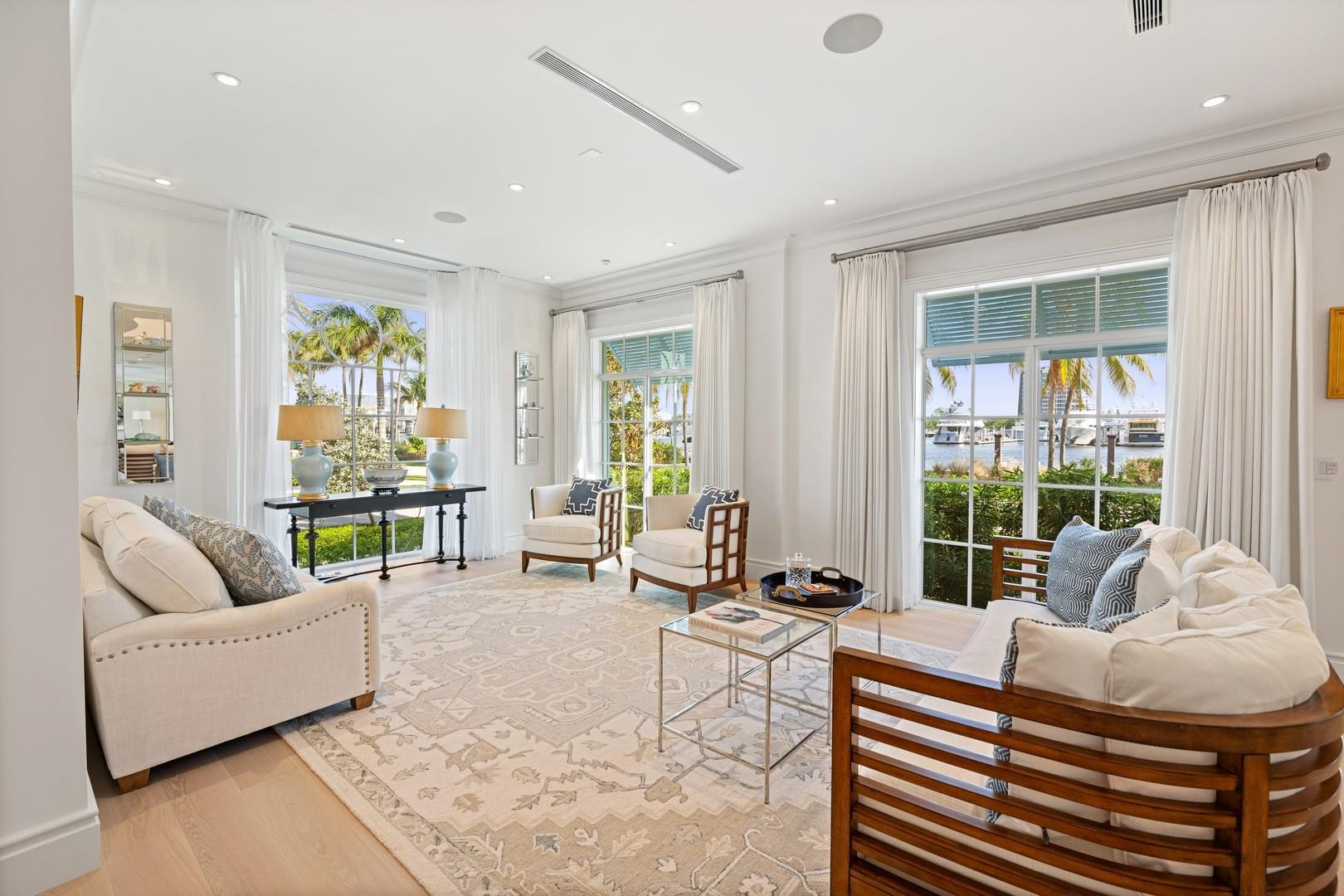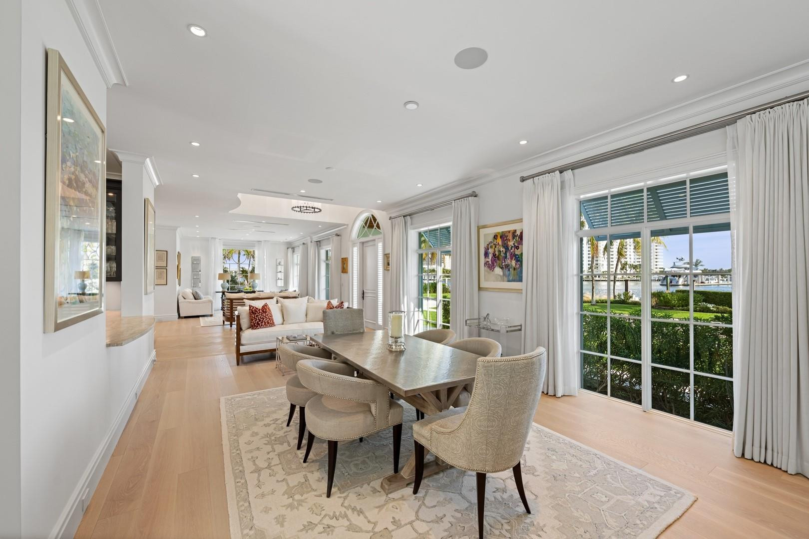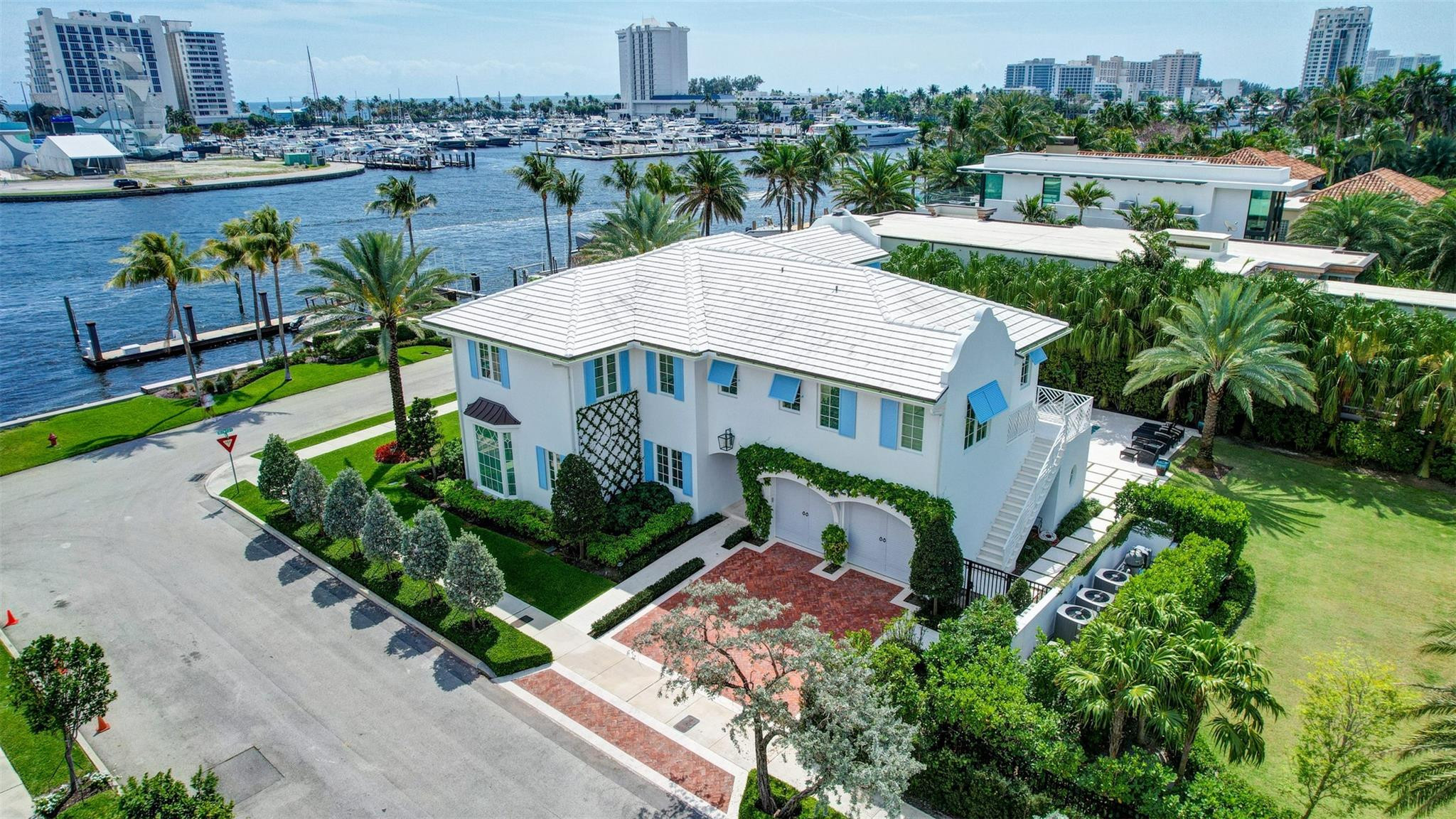 Newly built custom Intracoastal Estate offers a daily boat parade with wide open Intracoastal views from many rooms. Superbly located in highly desirable, security patrolled Idlewyld, close to beaches & Las Olas. Barely occupied, shows impeccably & as-new! Sophisticated island inspiration, high quality construction, millwork & natural finishes, hardwood floors & unique marbles. Lutron technology. Ultimate Chef's kitchen, professional grade appliances. 1st level: media, living & dining areas, 6th bed suite/home office option. Upstairs 4 bedrooms + ultra-luxury Primary Suite, dual closets/spa baths. The sale price included the vacant lot next door. There was also a furniture allocation and other factors that affected the recorded sales price. - Additional lot is INCLUDED.- All outdoor patios, walk ways and pool surround are Shell Reef brushed limestone. Handcrafted glass mosaic tiles in the pool and spa that has a wall fountain feature.- Saltwater pool with stepping stone and beach ledge water features. Pool side gas fire bowl feature, retractable electronic awning and separate spa. Dedicated cabana bathroom.- Kitchen countertops are Taj Mahal honed & leathered quartzite. Backsplashes Ann Saks. Professional grade appliances includes La Cornue gas range, Sub-zero fridge and freezer plus two dishwashers. Large center island perfect for casual dining.- Downstairs en-suite potential bedroom, office or media area.- Large two car garage has custom cabinetry and storage.- 2nd level Primary Suite is the perfect retreat. Private access to the large covered terrace which is perfect for capturing the intracoastal views in privacy. Enjoy the vaulted ceilings and island ambiance! There is also a private exterior staircase offering access to the pool.- Primary Suite includes two separate spa style bathrooms finished with statuario marble, custom cabinetry and tiles. Two large dressing rooms and morning bar.- Two of the secondary bedroom suites have access to a private stairway down to the pool and lawned additional lot.- The intracoastal waterway bedroom suite has an incredible spa style bath with soaking tub and separate shower.- The laundry and utility room is on the second level.- Air conditioners include: #1/5 ton, #2/3 ton, #3/2 ton, #4/3 ton and 2 mini splits in the family room plus 1 mini split in the garage.- Idlewyld Security has two elements, the Idlewyld Improvement Association maintains the gate and center island. There is also private security patrol overnight.- Low tide depth at the dock is approximately 7 ft and there are 5 ft boater's set backs & 30,000 lb boat left. Multi yacht dockage potential to put a larger yacht on the outside dock, tender on the lift and additional smaller boat or water toys on the inside of the floating dock. All privately gated._ New construction by top builder, Jim La Vallee Construction, Fort Lauderdale. The custom detailing and quality of this residence must be seen to be appreciated.
