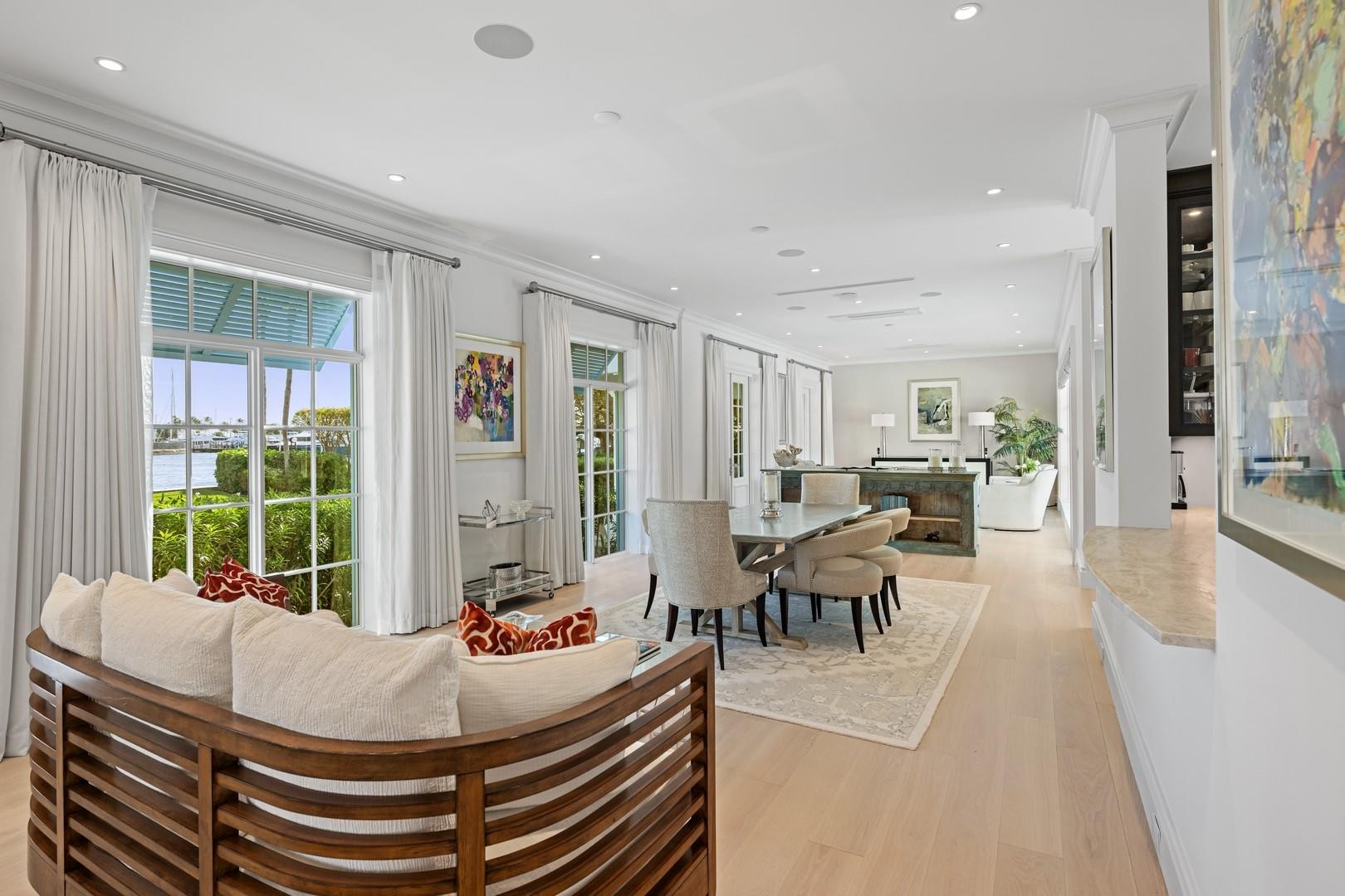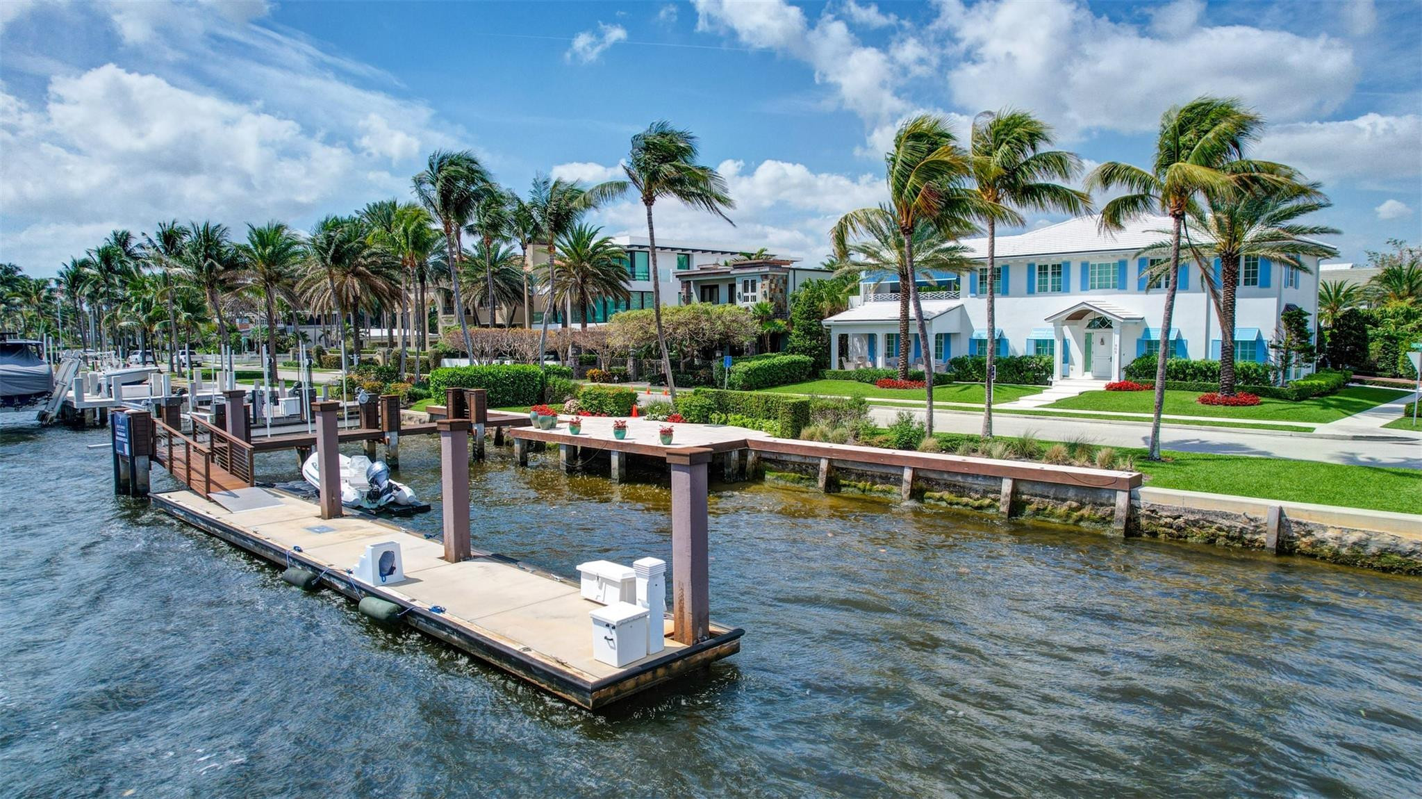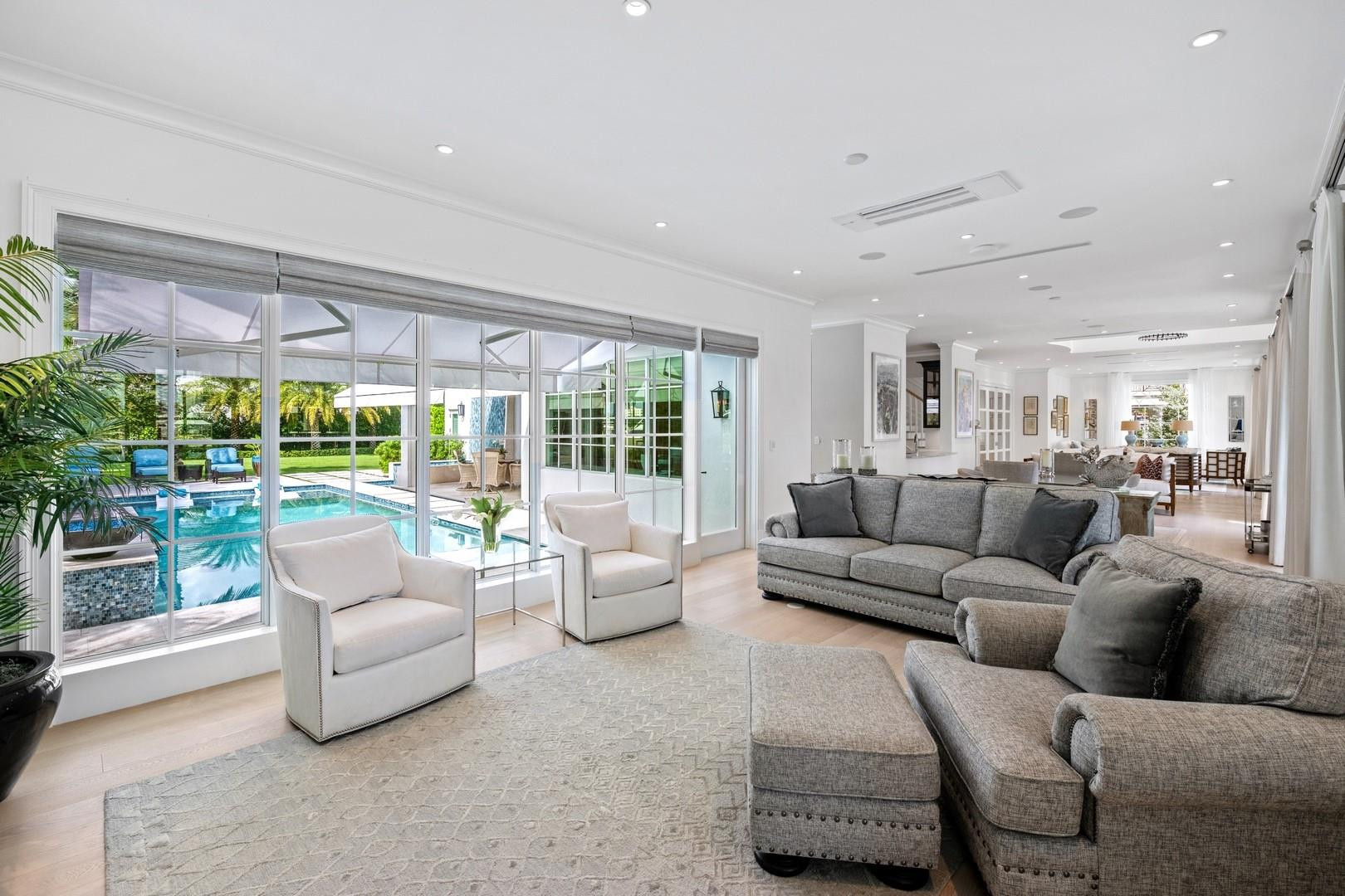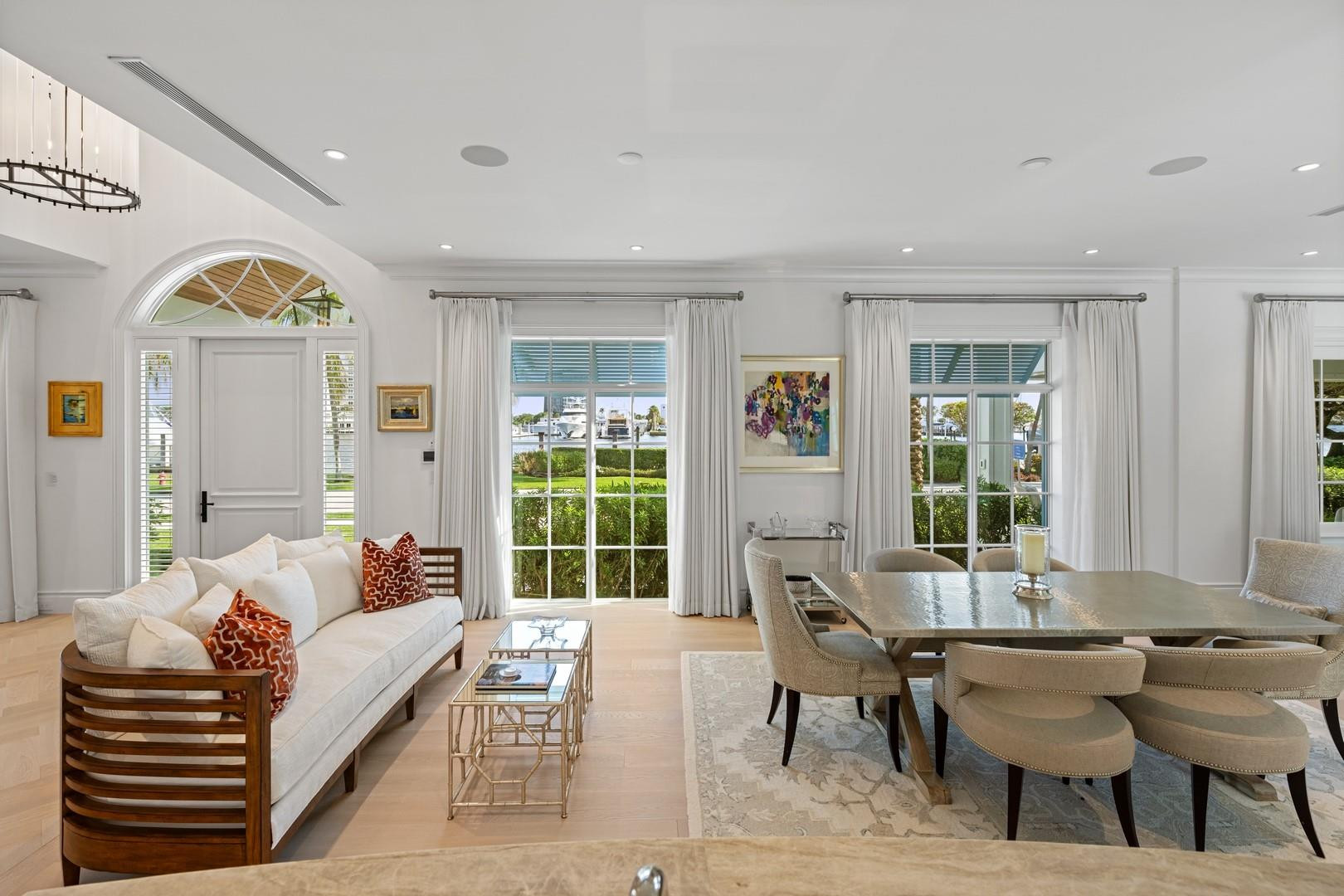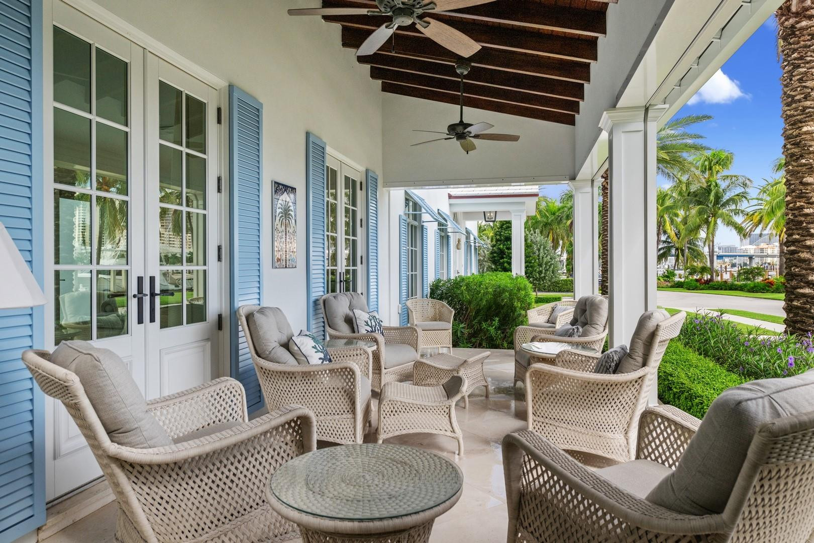 Newly built custom Intracoastal Estate offers a daily boat parade with wide open Intracoastal views from many rooms. Superbly located in highly desirable, security patrolled Idlewyld, close to beaches & Las Olas. Barely occupied, shows impeccably & as-new! Sophisticated island inspiration, high quality construction, millwork & natural finishes, hardwood floors & unique marbles. Lutron technology. Ultimate Chef's kitchen, professional grade appliances. 1st level: media, living & dining areas, 6th bed suite/home office option. Upstairs 4 bedrooms + ultra-luxury Primary Suite, dual closets/spa baths. The sale price included the vacant lot next door. There was also a furniture allocation and other factors that affected the recorded sales price. - Additional lot is INCLUDED.- All outdoor patios, walk ways and pool surround are Shell Reef brushed limestone. Handcrafted glass mosaic tiles in the pool and spa that has a wall fountain feature.- Saltwater pool with stepping stone and beach ledge water features. Pool side gas fire bowl feature, retractable electronic awning and separate spa. Dedicated cabana bathroom.- Kitchen countertops are Taj Mahal honed & leathered quartzite. Backsplashes Ann Saks. Professional grade appliances includes La Cornue gas range, Sub-zero fridge and freezer plus two dishwashers. Large center island perfect for casual dining.- Downstairs en-suite potential bedroom, office or media area.- Large two car garage has custom cabinetry and storage.- 2nd level Primary Suite is the perfect retreat. Private access to the large covered terrace which is perfect for capturing the intracoastal views in privacy. Enjoy the vaulted ceilings and island ambiance! There is also a private exterior staircase offering access to the pool.- Primary Suite includes two separate spa style bathrooms finished with statuario marble, custom cabinetry and tiles. Two large dressing rooms and morning bar.- Two of the secondary bedroom suites have access to a private stairway down to the pool and lawned additional lot.- The intracoastal waterway bedroom suite has an incredible spa style bath with soaking tub and separate shower.- The laundry and utility room is on the second level.- Air conditioners include: #1/5 ton, #2/3 ton, #3/2 ton, #4/3 ton and 2 mini splits in the family room plus 1 mini split in the garage.- Idlewyld Security has two elements, the Idlewyld Improvement Association maintains the gate and center island. There is also private security patrol overnight.- Low tide depth at the dock is approximately 7 ft and there are 5 ft boater's set backs & 30,000 lb boat left. Multi yacht dockage potential to put a larger yacht on the outside dock, tender on the lift and additional smaller boat or water toys on the inside of the floating dock. All privately gated._ New construction by top builder, Jim La Vallee Construction, Fort Lauderdale. The custom detailing and quality of this residence must be seen to be appreciated.