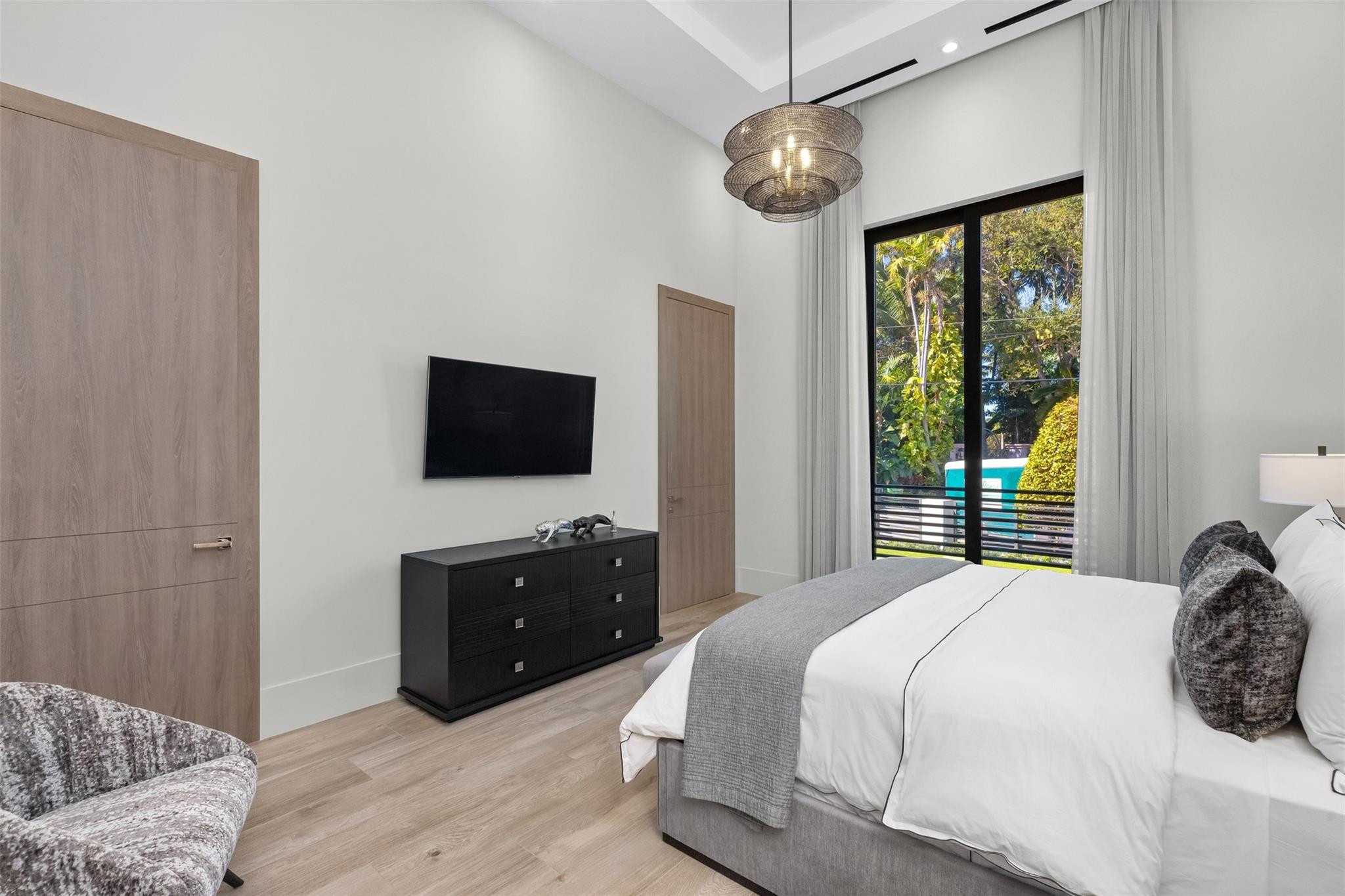 Positioned one home off the point in Fort Lauderdale's sought after Las Olas Isles, this fully gated modern one-story custom waterfront residence offers 100 feet of water frontage and an exceptional South Florida setting. With no fixed bridges and direct, quick access to the Intracoastal, it is ideal for serious boaters and effortless waterfront living. Built by highly reputable builder Jeff Hendricks, the home showcases 21' ceilings in the great room and 15' ceilings in the kitchen. The well-designed layout includes an office, gym, cabana bath, and a two-car garage with 15' ceilings allowing room for lifts. A roof deck with outdoor shower adds another elevated retreat. Walk to Las Olas Boulevard, dining, shopping, and the beach.